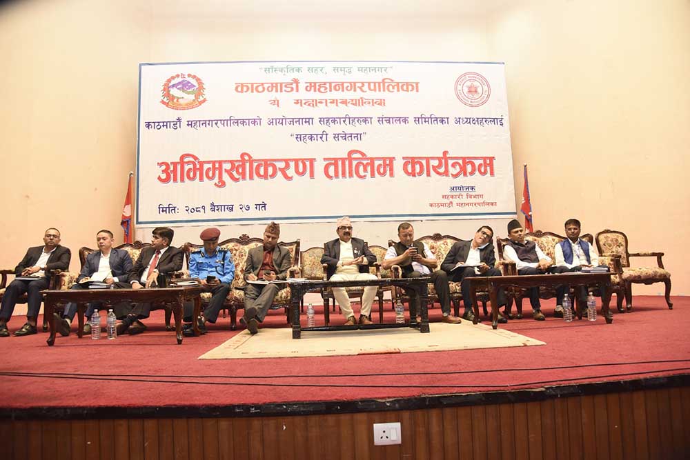 काठमाडौँ । सहकारी क्षेत्रमा देखिएका विद्यमान समस्या समाधान गर्न नियामक निकायका विचको दृष्टि एउटै हुनुपर्ने र सहकारीहरुले आफूलाई इमान्दार स्वनियममा राख्नु पर्ने खाँचो देखाइएको छ । काठमाडौँ महानगरपालिकाको सहकारी विभागले राष्ट्रिय सभा गृहमा आयोजना गरेको ‘सहकारी सचेतना’ अभिमुखीकरण कार्यक्रममा यसरी मात्र समस्याको समाधान आउने निष्कर्ष निकालिएको छ ।