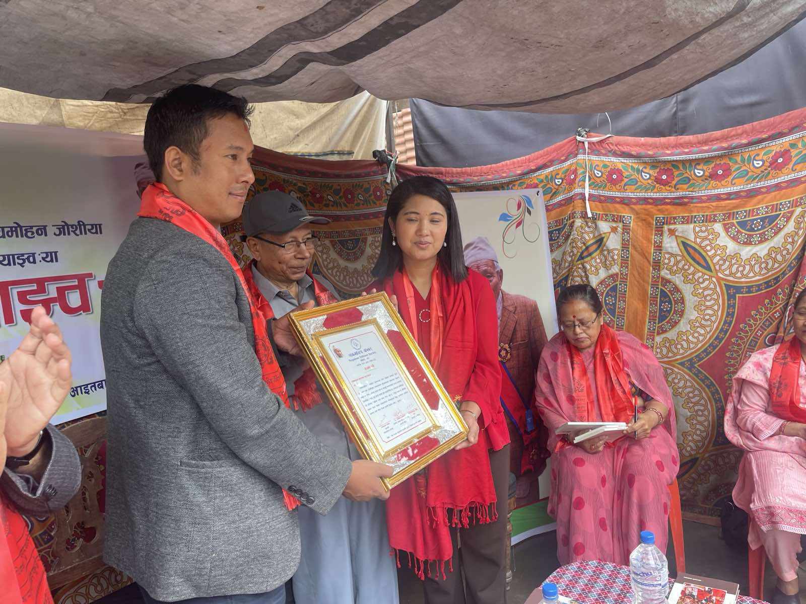 काठमाडौ । शताव्दी पुरुष स्वर्गीय सत्यमोहन जोशीको तस्वीरलाई सगरमाथाको चुचुरोमा पुयाएबापत सगरमाथा आरोही कल्पना महर्जन सम्मानित भएकी छन् । बाङमय शताव्दी पुरुष, लोकसाहित्यकार डा सत्यमोहन जोशीको एक सय पाँंचौं वर्षको जन्मजययन्तीको सप्ताहव्यापी समापन कार्यक्रममा राजधानीमा आयोजित कार्यक्रममा महर्जनलाई सम्मान गरिएको हो ।