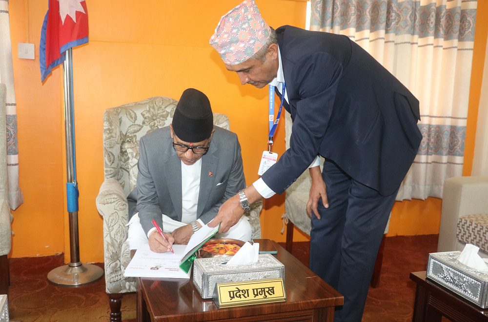महालेखा परीक्षकको छैटौं वार्षिक प्रतिवेदन ग्रहण गर्नुहुँदै प्रदेश प्रमुख भट्टले यस्तो बताउनुभएको हो । नेपालको संविधानको धारा २९४ को उपधारा (३) बमोजिम महालेखा परीक्षकको कार्यालयका नायव महालेखापरीक्षक जयराम घिमिरेले प्रतिवेदन प्रदेश प्रमुखलाई पेश गर्नुभएको हो ।