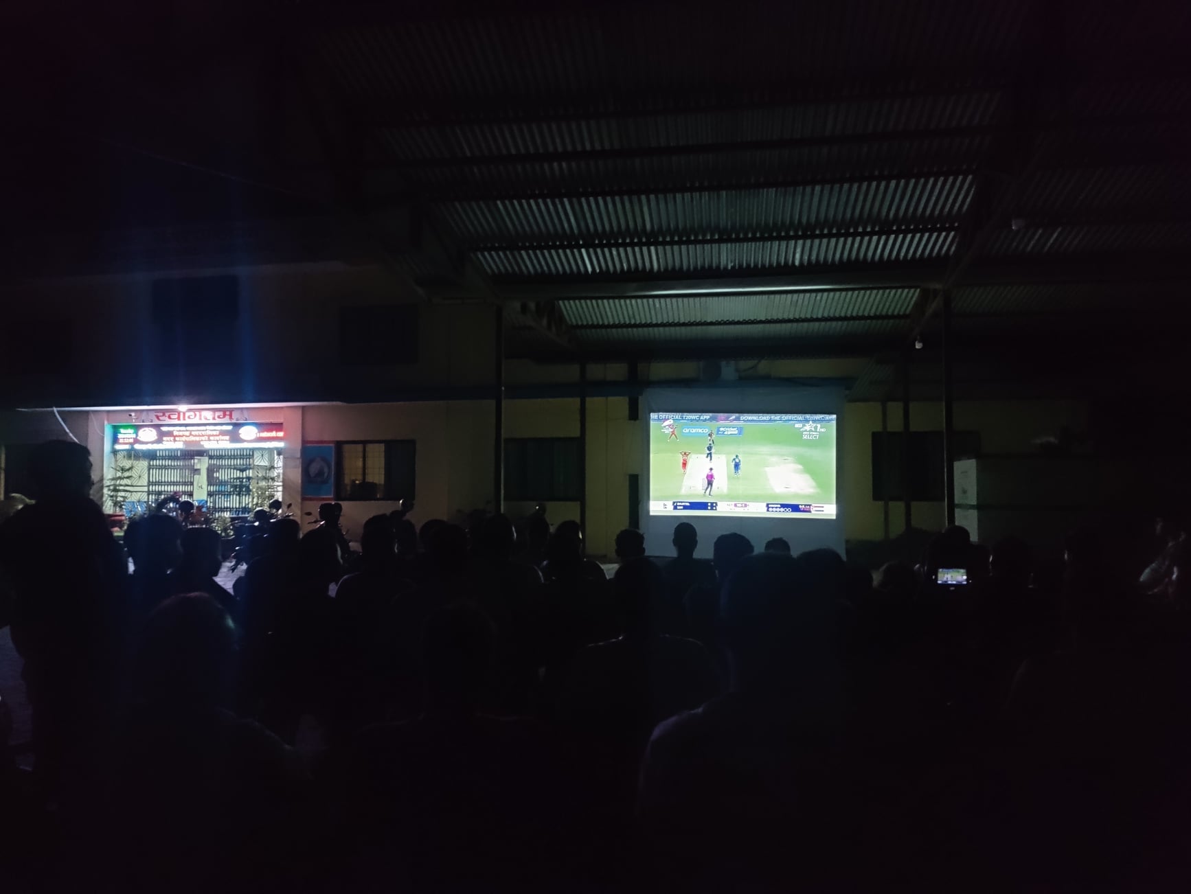 बारा । गत राती भएको आईसीसी ट्वान्टी–२० पुरुष विश्वकप क्रिकेट प्रतियोगिताको नेपाल र नेदरल्यान्ड्सबीच खेल हेर्न निजगढ नगरपालिकाले ठूलो स्क्रिनको व्यवस्था गरेपछि नगरपालिका भवनमा दर्शकको ओइरो लागेको थियो ।
