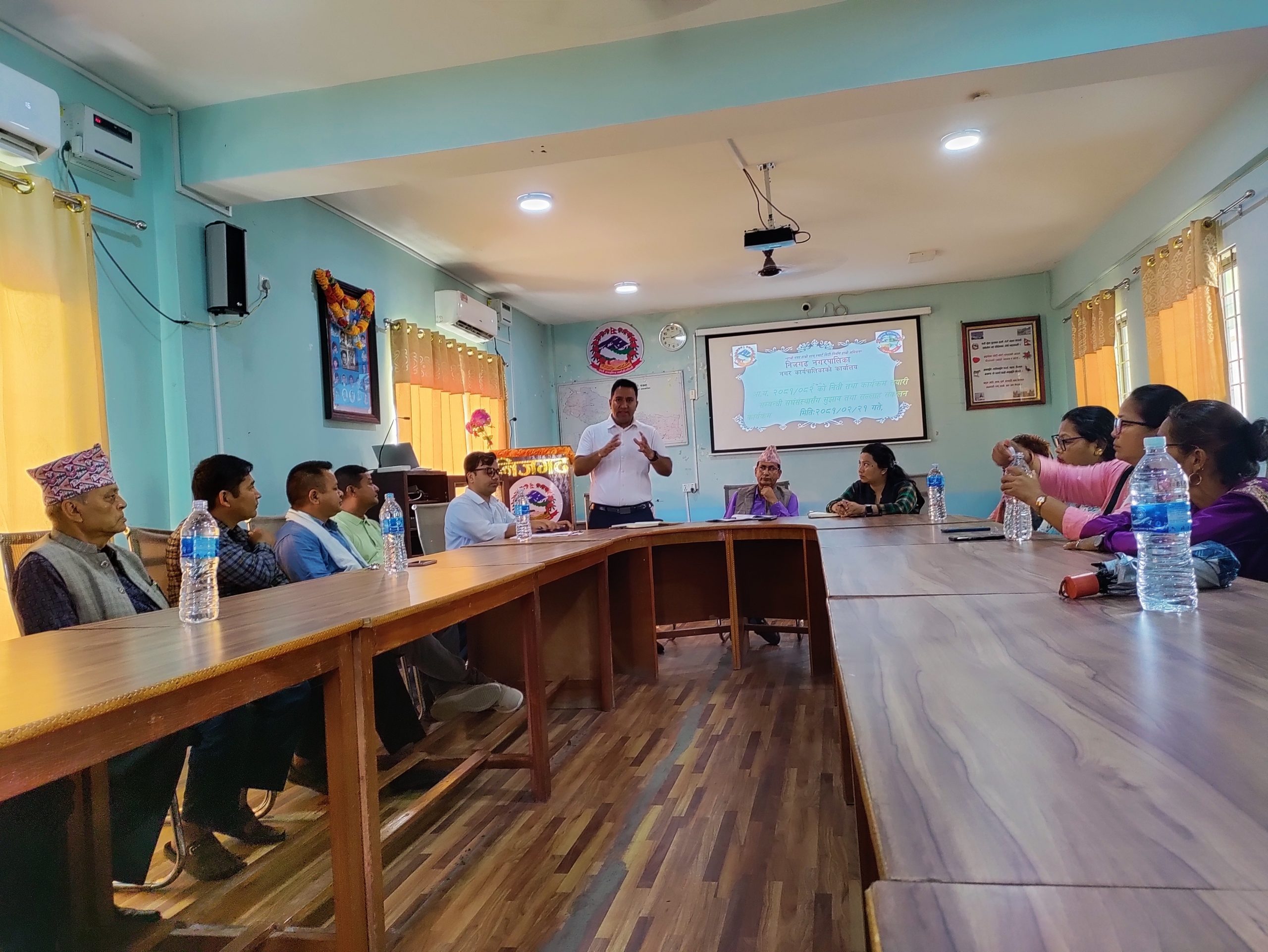 नगरपालिकाले सोमबार बिहान ८ बजे नगरपालिकामा अवस्थित संघ संस्था र सोही दिन दिउसो ३ बजे नगरपालिका क्षेत्राधिकारभित्र सञ्चालित सहकारी संस्थाहरुका प्रतिनिधिहरुसंगै छलफल गरेको छ । यस्तै मंगलबार बिहान ८ बजे विद्यालयका प्रधानाध्यापकहरु र सोही दिन दिउसो ३ बजेबाट सामुदायिक वनका प्रतिनिधिहरुसँग छलफल गर्ने जनाएको छ ।