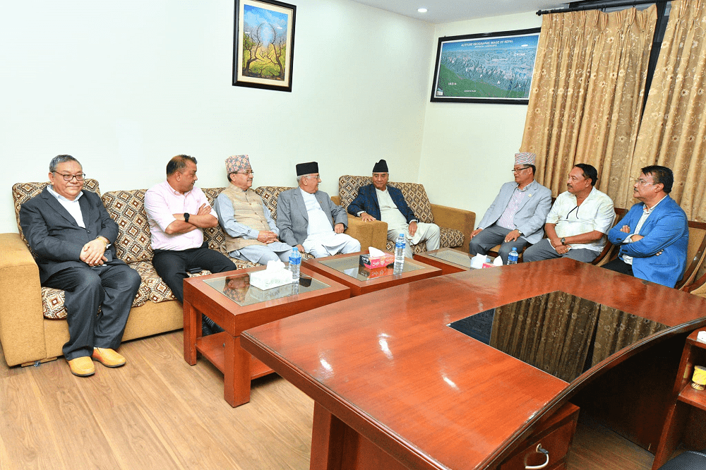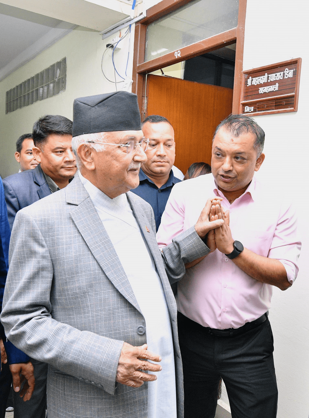 काठमाडौं । नेपाली कांग्रेसले नेकपा एमालेका अध्यक्ष केपी शर्मा ओली कांग्रेस मुख्यालय सानेपामा भव्य स्वागत गरेको छ ।कांग्रेसका स्वर्गीय नेता गिरिजाप्रसाद कोइरालाको शताब्दीऔं जन्मजयन्तीको अवसरमा आयोजित ‘क्रान्तिदेखि शान्तिसम्म’ नामक फोटो प्रदर्शनी अवलोकनमा सहभागी हुन पूर्व प्रधानमन्त्री ओली सानेपा पुगेका हुन् ।कांग्रेसले एमालेसँग मिलेर नयाँ गठबन्धन बनाउने सहमति गरेको अर्को दिन ओली सानेपा पुगेका थिए । ओलीलाई कांग्रेस सभापति शेरबहादुर देउवासहित पदाधिकारीहरुले स्वागत गरेका थिए । कांग्रेस र एमालेबीच एमाले अध्यक्ष केपी शर्मा ओलीको नेतृत्वमा नयाँ सरकार गठन गर्ने सहमति भएको छ ।