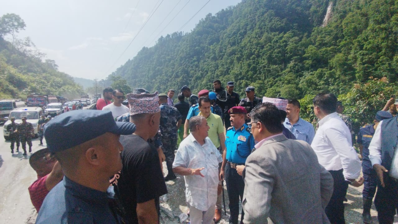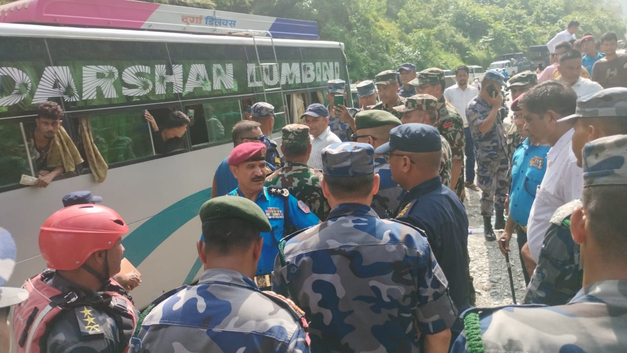 काठमाडौँ । गृहसचिव एकनारायण अर्यालय, प्रहरी महानिरीक्षक बसन्तबहादुर कुँवरले सिमलतालमा गएको पहिरोले दुई बस बगाएको क्षेत्रको स्थलगत अवलोकन गरेका छन् ।स्थलगत अवलोकनमा गृहसचिव अर्याल, महानिरीक्षक कुँवरज्यू लगायत सुरक्षा निकायका प्रमुखहरू, राष्ट्रिय विपद् न्यूनिकरण तथा व्यवस्थापन प्राधिकरणका पदाधिकारीज्यूहरू, विपद् तथा द्वन्द्व व्यवस्थापन महाशाखाका सह-सचिवज्यू तथा वरिष्ठ प्रहरी अधिकृतज्यूहरूको उपस्थित रहेका थिए ।