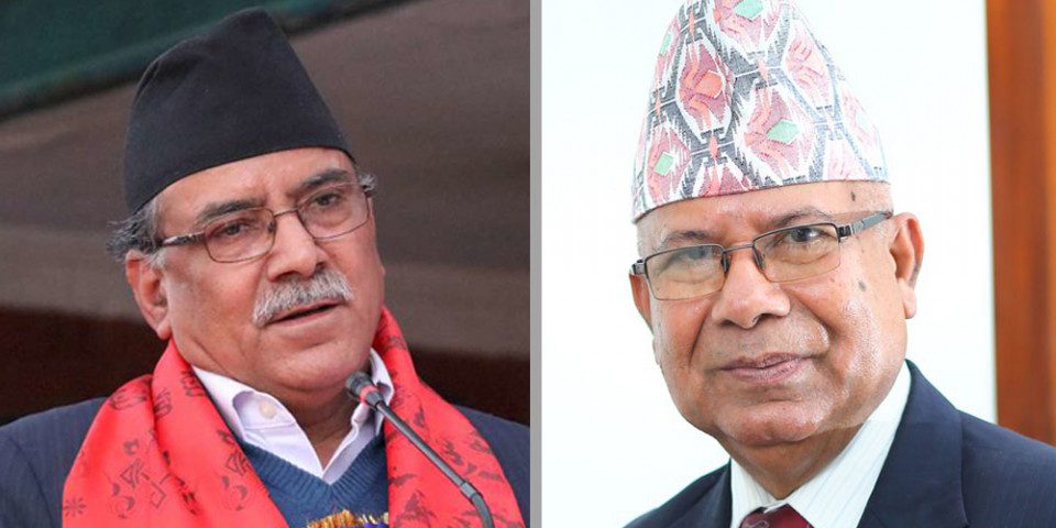 काठमाडौं । नेकपा माओवादी केन्द्रका अध्यक्ष पुष्पकमल दाहाल प्रचण्ड र नेकपा एकीकृत समाजवादीका अध्यक्ष माधवकुमार नेपालबीच भेटवार्ता भएको छ ।आइतबार बिहान माओवादी केन्द्रको संसदीय दलको कार्यालयमा दुई नेताबीच भेटवार्ता भएको हो । प्रधानमन्त्री केपी शर्मा ओलीले आज अपराहन्न १ बजे बस्ने प्रतिनिधिसभाको बैठकमा विश्वासको मत लिने तयारी गरिरहेको बेला प्रचण्ड र नेपालले भेटवार्ता गरेका हुन् ।