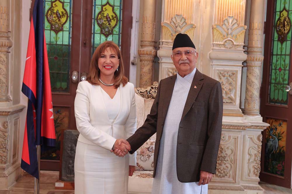 काठमाडौँ । प्रधानमन्त्री केपी शर्मा ओलीसँग नेपालका लागि संयुक्त राष्ट्रसङ्घका आवासीय प्रतिनिधि हाना सिङ्गर हम्दीले आज सिंहदरबारमा शिष्टाचार भेट गरेकी छन् । सो अवसरमा प्रधानमन्त्री ओलीले अन्तर्राष्ट्रिय प्रतिबद्धता र घोषणाप्रति प्रतिबद्धता जनाउँदै नेपालको राष्ट्रिय आकाङ्क्षका रुपमा रहेको ‘समृद्ध नेपाल, सुखी नेपाली’लाई सार्थक बनाउन राष्ट्रसङ्घको सहयोगको अपेक्षा व्यक्त गरे ।