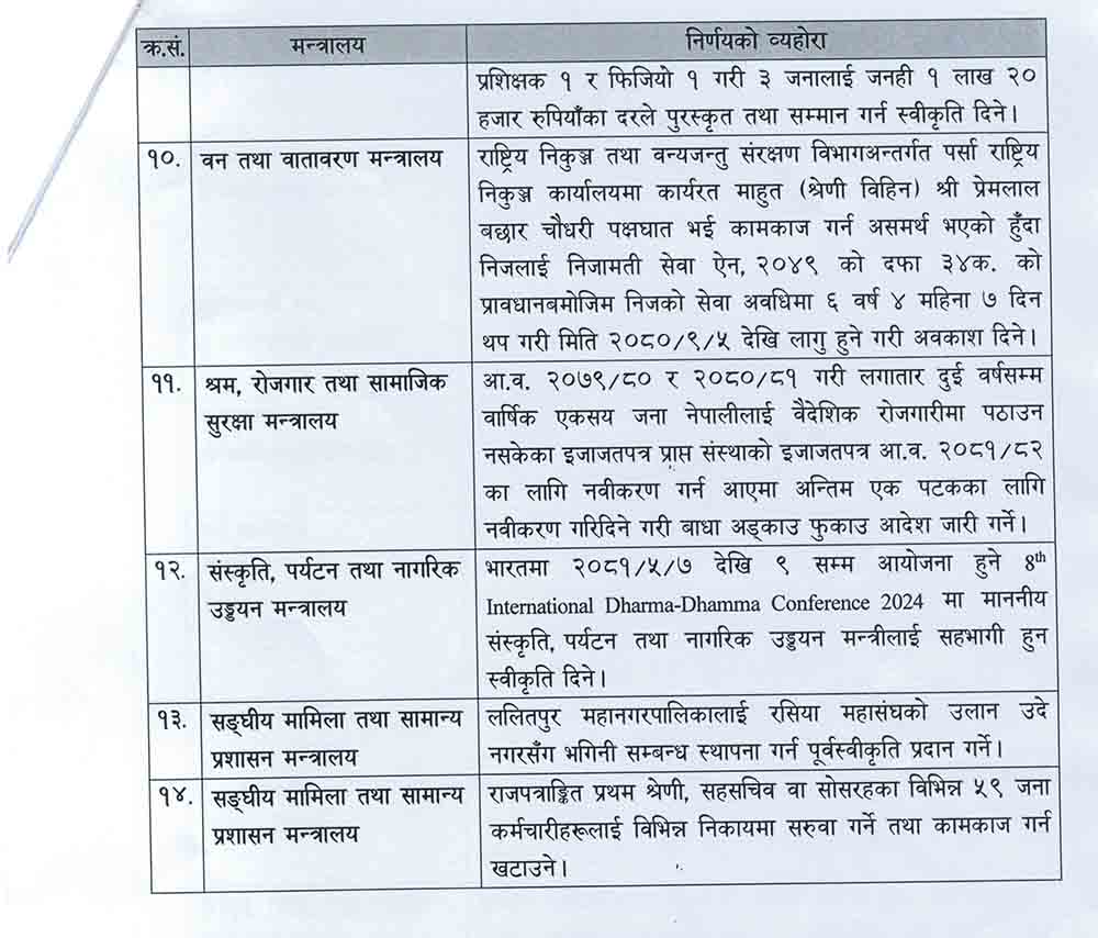 काठमाडौँ । साउन ३१ गते बसेको मन्त्रिपरिषद्को बैठकका निर्णयहरु सार्बजनिक गरिएको छ ।सञ्चार तथा सूचना प्रविधिमन्त्री तथा सरकारका प्रवक्ता पृथ्वी सुब्बा गुरुङले सरकारका निर्णय सार्बजनिक गरेका हुन् ।मन्त्रिपरिषदको बैठकका निर्णयहरु: