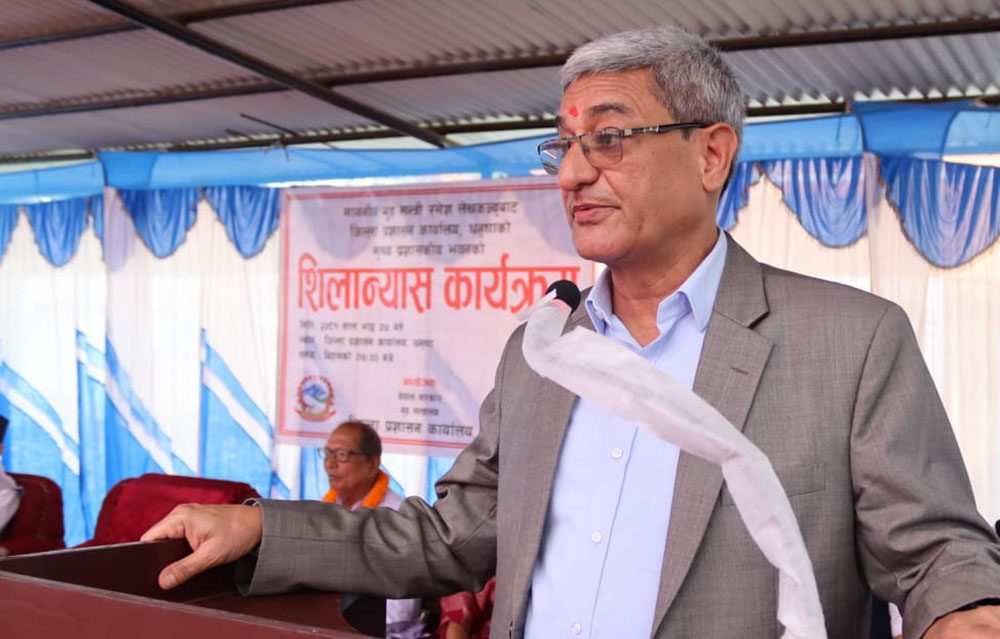 शुक्रबार बिहान जिल्ला प्रशासन कार्यालय धनुषाको भवनको शिलान्यास गर्दै गृहमन्त्री लेखकले दुई ठूलाको समिकरणबाट निर्माण भएको यो सरकारले मुलुकको आत्मविश्वास मात्रै नभई जटिल समस्या समाधान गर्न समेत सघाएको दावी गरे ।