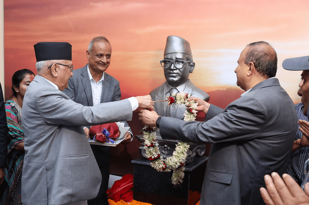काठमाडौं । प्रधानमन्त्री एवं नेकपा (एमाले) अध्यक्ष केपी शर्मा ओलीले जननेता मदनकुमार भण्डारीको अर्धकदको प्रतिमाको आज अनावरण गरेका छन् । ललितपुर, च्यासलस्थित पार्टीको केन्द्रीय कार्यालयमा निर्माण गरिएको प्रतिमाको एमालेको सचिवालय बैठक अघि उक्त अनावरण भएको हो ।अनावरण कार्यक्रममा पार्टीका शीर्ष नेताहरू सहभागी थिए । कलाकार लालकाजी लामाले उक्त प्रतिमा निर्माण गरेका हुन् ।