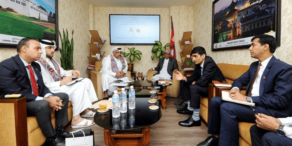 काठमाडौँ । संस्कृति, पर्यटन तथा नागरिक उड्डनमन्त्री बद्रीप्रसाद पाण्डेसँग नेपालका लागि कतारका राजदूत मिशाल मोहम्मद अली अल अन्सारीले शिष्टाचार भेट गरेका छन् । मंगलबार मन्त्रालयमा भएको भेटवार्ताका क्रममा द्विपक्षीय हितका बारे छलफल भएको पर्यटनमन्त्रीको सचिवालयले जनाएको छ ।