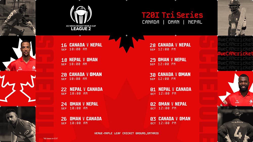 यो टी-२० आइसीसी क्रिकेट विश्वकप लिग-२ अन्तर्गतको क्यानडामा हुने त्रिकोणात्मक एकदिवसीय सिरिज पछि हुने भएको छ । लिग -२ सिरिजमा पनि घरेलु टोली क्यानडा, नेपाल र ओमान सहभागी हुदै छन् ।
