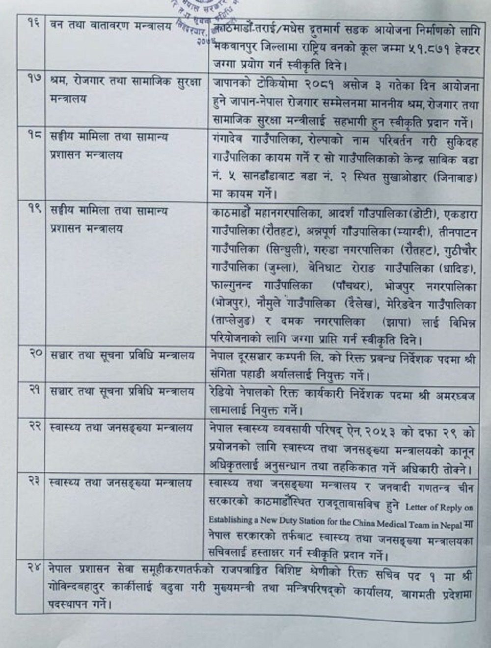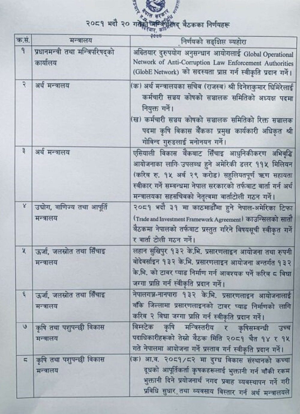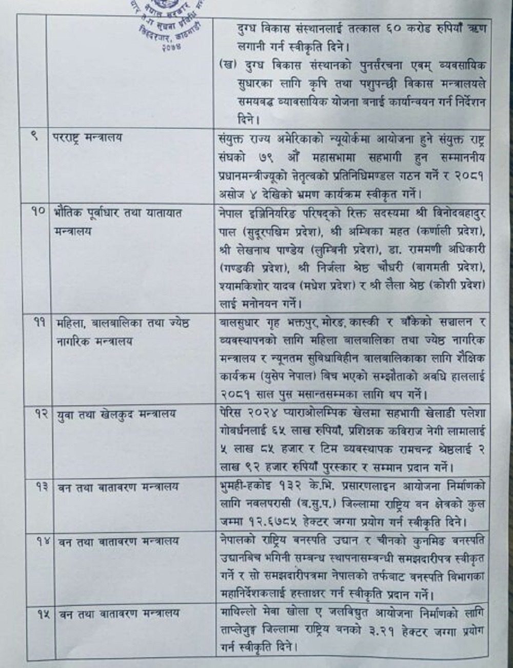 मन्त्रिपरिषद्को बैठकले के के निर्णय गर्यो ?