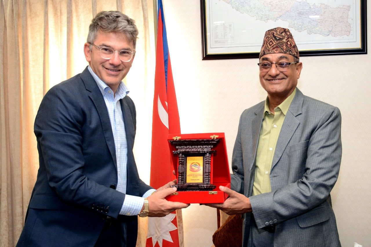 काठमाडौं । गृहमन्त्री रमेश लेखक र नेपालका लागि विश्व बैंकको राष्ट्रिय निर्देशक डेभिड सिस्लेनबीच भेटवार्ता भएको छ । गृहमन्त्रीको कार्यकक्षमा शुक्रबार भएको भेटमा गृहमन्त्री लेखक र नेपालका लागि विश्व बैंकको राष्ट्रिय निर्देशक सिस्लेनसहितका पदाधिकारीबिच भेटवार्ता भएको हो । उनीहरुबिच विश्व बैंकले नेपालको विभिन्न परियोजनामा लगानीबारे छलफल भएको थियो ।