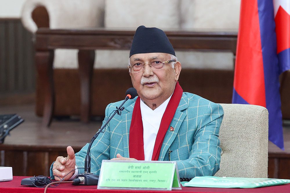 ‘आधुनिक प्रणाली र ठुलो मात्राको उत्पादनले बजार पाउँछ । हाम्रो उत्पादन नबढेसम्म व्यापार घाटा भइरहन्छ । व्यापार घाटा कम गर्न तथा निर्यात र विप्रेषणका भरमा अर्थतन्त्र चलाउन खोज्ने प्रवृत्तिलाई उल्ट्याउनुपर्छ ।’, प्रधानमन्त्री ओलीले भने, “वन क्षेत्र भनिएका तर वन नभएका खाली ठाउँमा कृषि र फलफूूल खेती गर्न मिल्ने हामी निर्णय गर्दैछौँ । यसरी जाँदा राष्ट्रिय अर्थतन्त्रमा कृषिको योगदान बढेर जानेछ र आत्मर्भिरता बढ्नेछ ।’