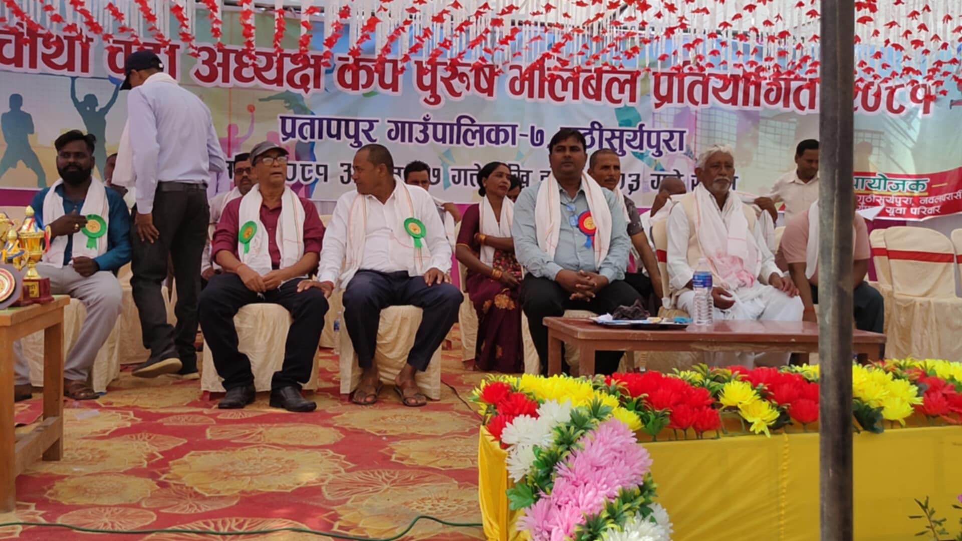 सो अवसरमा प्रतापपुर गाउँपालिका वडा न.८ का वडा अध्यक्ष संतोष राजभर , वडा न.९ का वडाध्यक्ष जय किसुन चौधरी , वडा न.३ का वडाध्यक्ष ऋषिदेव पटेल लगायतले खेलकुदको महत्वमाथी प्रकाश पार्नु भयो ।