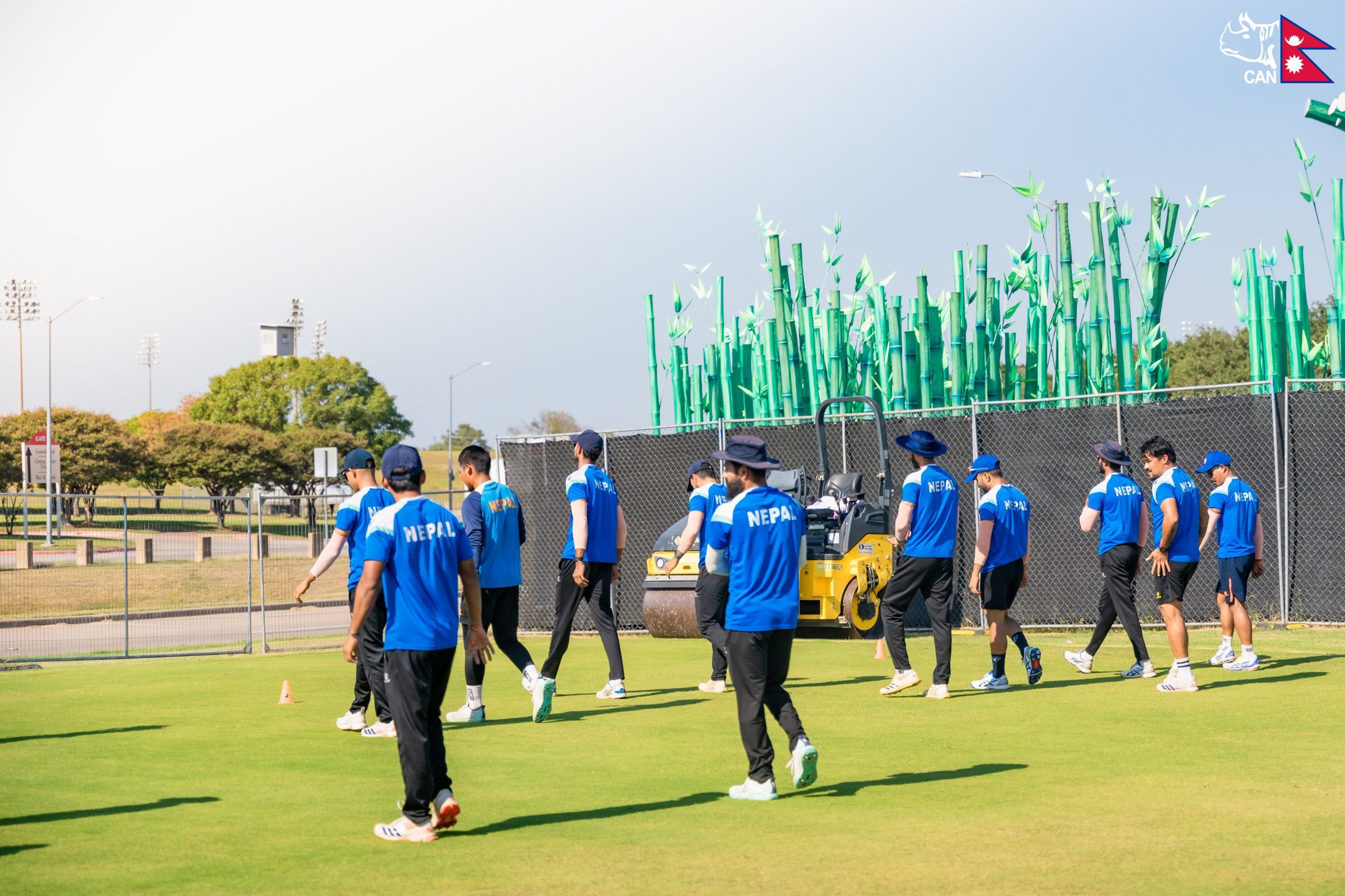 काठमाडौँ । नेपाली राष्ट्रिय क्रिकेट टिमले अमेरिकाविरुद्ध खेल्ने टी- २० सिरिजको तयारीका लागि अमेरिकामा प्रशिक्षण गरिरहेको छ ।नेपालले पहिलो खेल आगामी शुक्रबार, दोस्रो खेल आइतबार र तेस्रो खेल सोमबार खेल्ने भएको नेपाल क्रिकेट संघ (क्यान) ले जानकारी दिएको छ ।सबै खेल नेपाली समय अनुसार बिहान ५: ४५ बजेदेखि शुरु हुने छन् भने यी खेल अमेरिकाको टेक्सासस्थित ग्राण्ड प्रेरी स्टेडियममा हुने छ ।