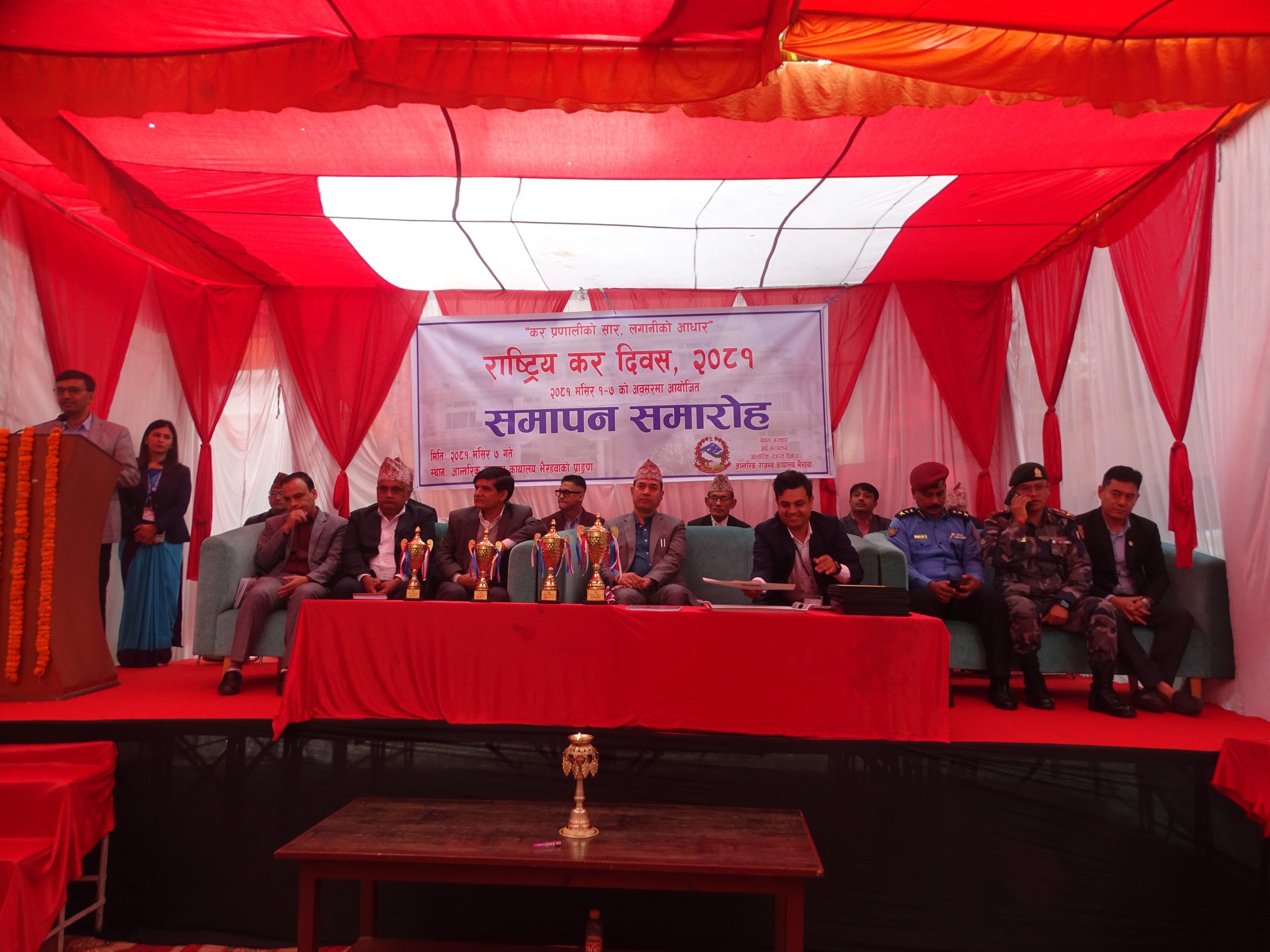 समापन कार्यक्रममा बोल्दै प्रमुख अतिथि तथा जिल्ला प्रशासन कार्यलय रुपन्देहीको प्रमुख जिल्ला अधिकारी बासुदेव घिमिरेले ‘राज्यको दायित्वहरु पुरा गर्ने साधन भनेकै सरकारी राजस्व प्रमुख रुपमा हो । सरकारी राजस्व सहि ढङ्गले उठयो भने त्यहि ढङ्गले परिचालन हुन्छ, अनी विकास र स्थिरता हासिल हुन्छ ’।यदि सरकारी राज्स्व उठेन वा राज्स्व लक्ष्य उठेन भने राज्यको दायित्व, क्रियाकलापहरु खुम्चिदै जान्छ । त्यसैले राज्स्व प्रशासन तथा राज्स्व कार्यलय अत्यन्त महत्वपूर्ण छ उनले भने । जनताबाट जनतासम्म पुग्ने श्रोत राज्स्व हो । जनताबाट सरकारमा जान्छ अनि फेरी सरकारबाट जनतामा फर्किन्छ अर्थात हामीले तिरेको कर हामीमै फर्किएर आउछ । प्रमुख जिल्ला अधिकारी घिमिरेको भनाई छ ।