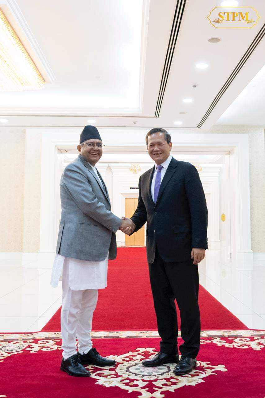 नोम पेन्ह (कम्बोडिया) । पाँच दिने कम्बोडिया भ्रमणमा रहेका सभामुख देवराज घिमिरेले यहाँका प्रधानमन्त्री सम्देच हुन मानेट र माथिल्लो सदन सिनेटका अध्यक्ष सम्देच हुन सेनसँग शिष्टाचार भेट गरेका छन ।रप्रधानमन्त्री सम्देच हुन मानेटसँग कम्बोडियाको पिस प्यालेसमा भएको भेटमा दुई देशबीचको ऐतिहासिक सम्बन्धलाई नयाँ उचाइमा पुर्याउने महत्वपूर्ण विषयहरूमा छलफल भएको सभामुखको सचिवालयले जनाएको छ । भेटमा सभामुख घिमिरेले नेपालको बुद्धको जन्मस्थल लुम्बिनी र कम्बोडियाको अंगकोरबाट हिन्दू तथा बौद्ध सम्पदाहरूलाई प्रवर्द्धन गर्न प्रत्यक्ष हवाई सेवा सुरु गर्नुपर्नेमा जोड दिए ।