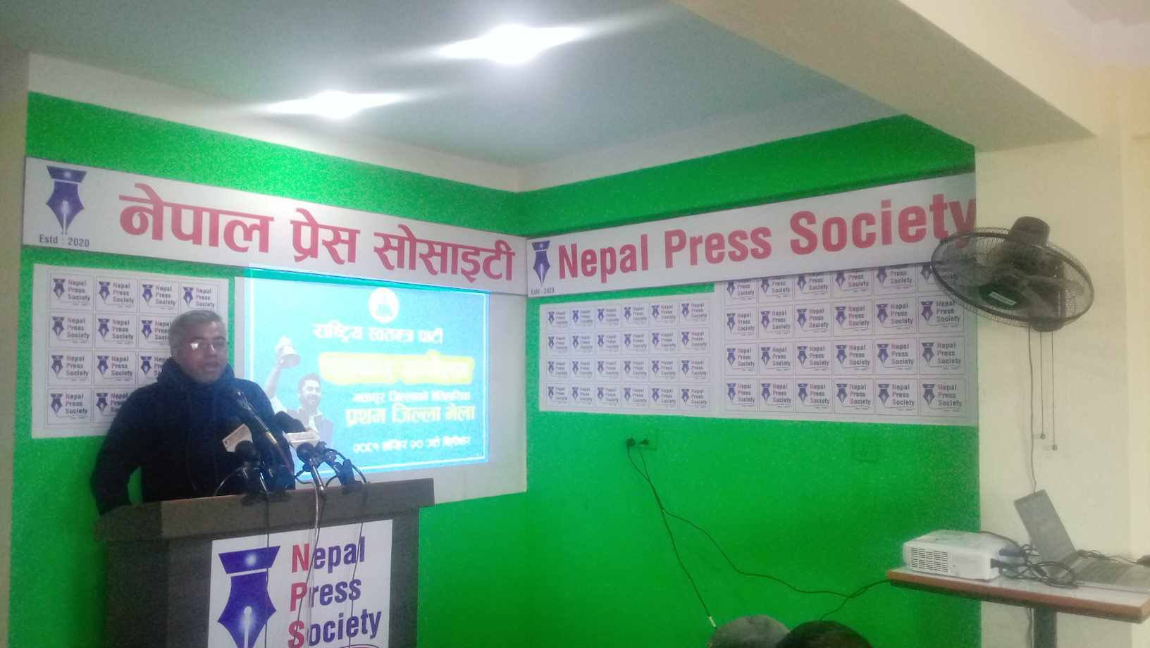 कार्यक्रम पत्रकार सम्मेलन आयोजक नेपाल प्रेस सोसाइटीका अध्यक्ष उपेन्द्र केसीको सभापतित्वमा सम्पन्न भएको थियो ।