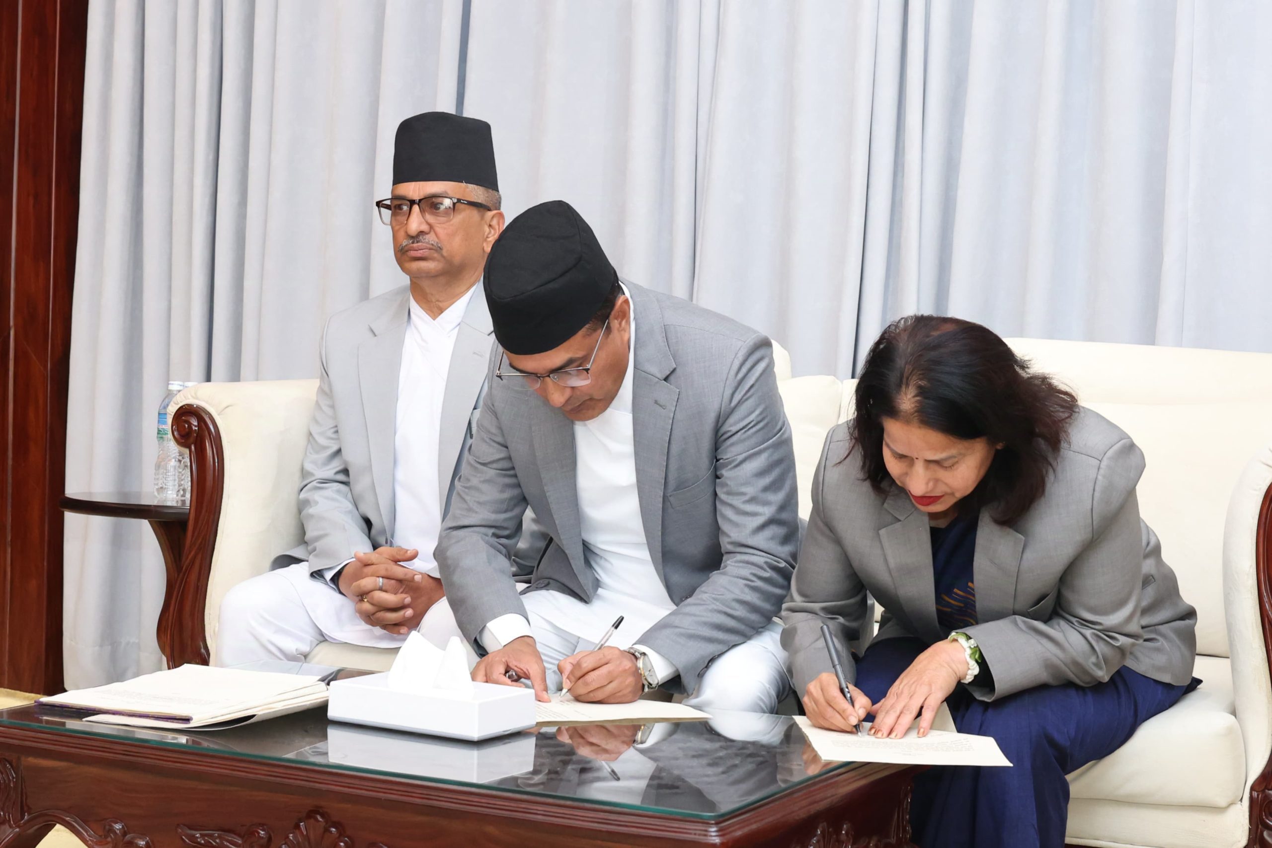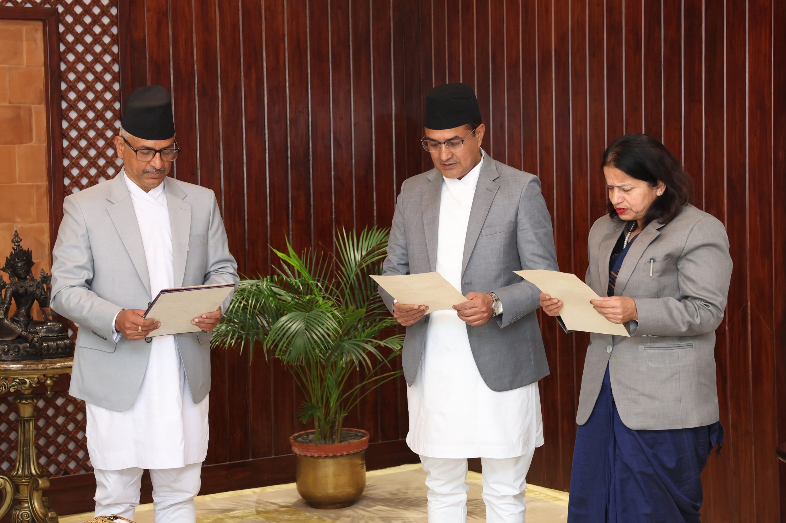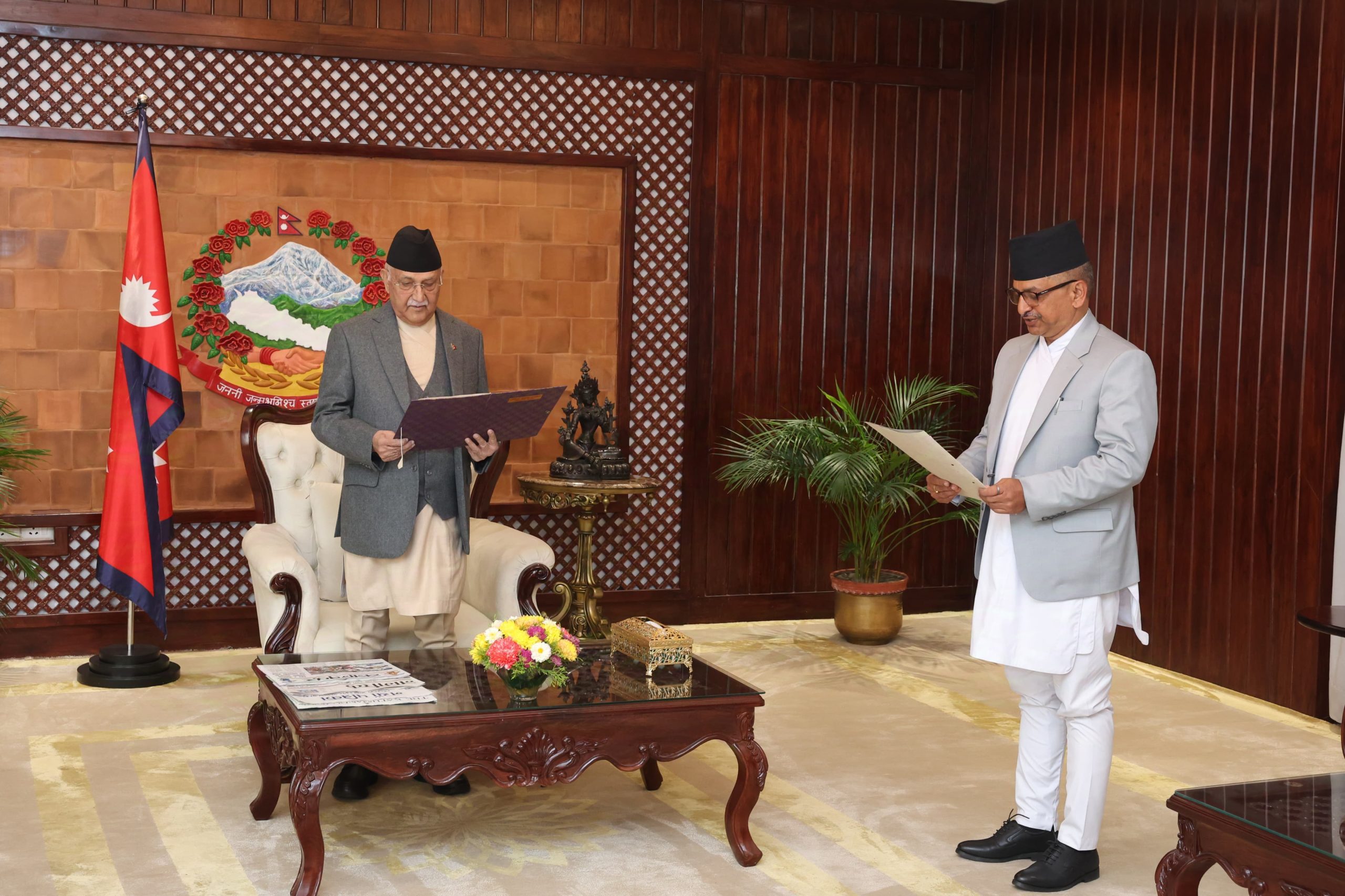 प्रधानमन्त्री निवास, बालुवाटारमा आज आयोजित कार्यक्रममा प्रधानमन्त्री ओलीले प्रमुख आयुक्त आचार्यलाई र प्रधानमन्त्रीको उपस्थितिमा प्रमुख आचार्यले नवनियुक्त आयुक्तहरु गगन विष्ट र दुर्गा भण्डारीलाई सपथ गराएका हुन् ।