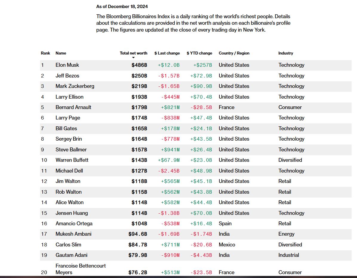 न्युयोर्क। टेस्ला र स्पेसएक्सका सीईओ र एक्स मालिक एलोन मस्कको कुल सम्पत्ति झन्डैै ५०० बिलियन अमेरिक डलर पुगेको छ। यति धेरै सम्पत्ति आर्जन गर्ने उनी विश्वकै पहिलो व्यक्ति बनेका छन् । ब्लूमबर्ग बिलियनेयर्स इन्डेक्सले रिपोर्ट गरेको यो ठूलो परिवर्तन विद्युतीय सवारी, अन्तरिक्ष अन्वेषण, आर्टिफिसियल इन्टेलिजेन्स र सामाजिक सञ्जाललगायत धेरै क्षेत्रमा मस्कको प्रभावका कारण भएको हो।
