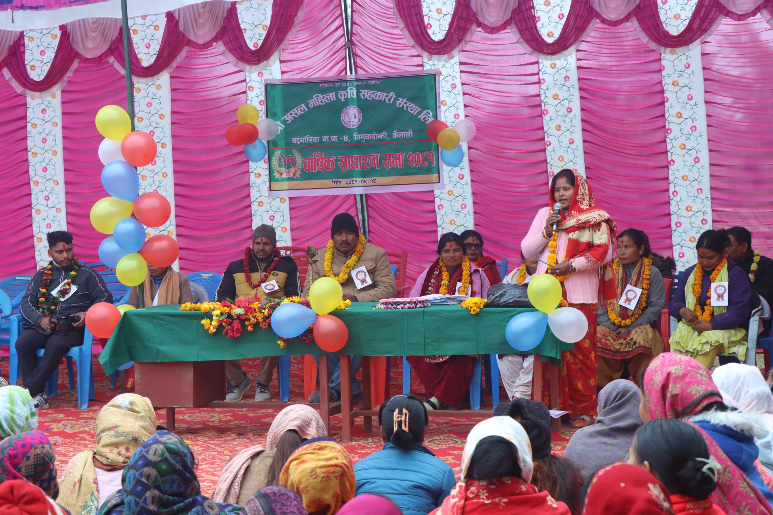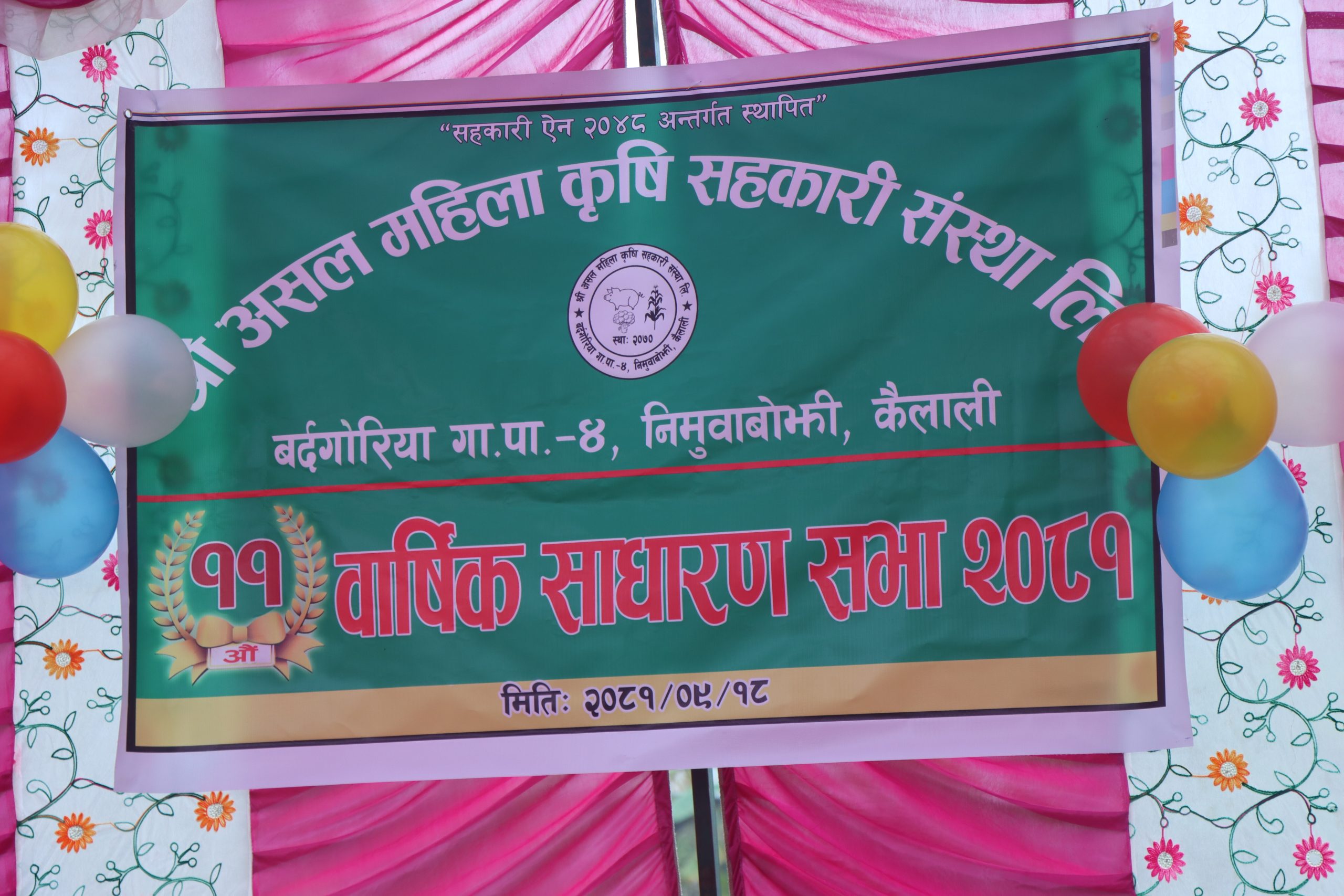 कैलाली । कैलालीको बर्दगोरिया गाउँपालिका वडा नम्बर ४ निमुवाबोझीमा रहेको श्री असल महिला कृषि सहकारी संस्था लिमिटेडको ११ औ वार्षिक साधारणसभा सम्पन्न भएको छ । बिहीवार संस्थाका अध्यक्ष पार्वती साउदको सभाध्यक्षतामा भएको कार्यक्रमको प्रमुख अथितिका रूपमा बर्दगोरिया गाउँपालिका वडा नम्बर ६ का अध्यक्ष रामकृष्ण डगौरा थारु (रन्जित) रहेका थियो भने विशिष्ट अथितिमा वडा नम्बर ६ का वडा सदस्य नेहा कुमारी चौधरी रहेकी थिइन ।