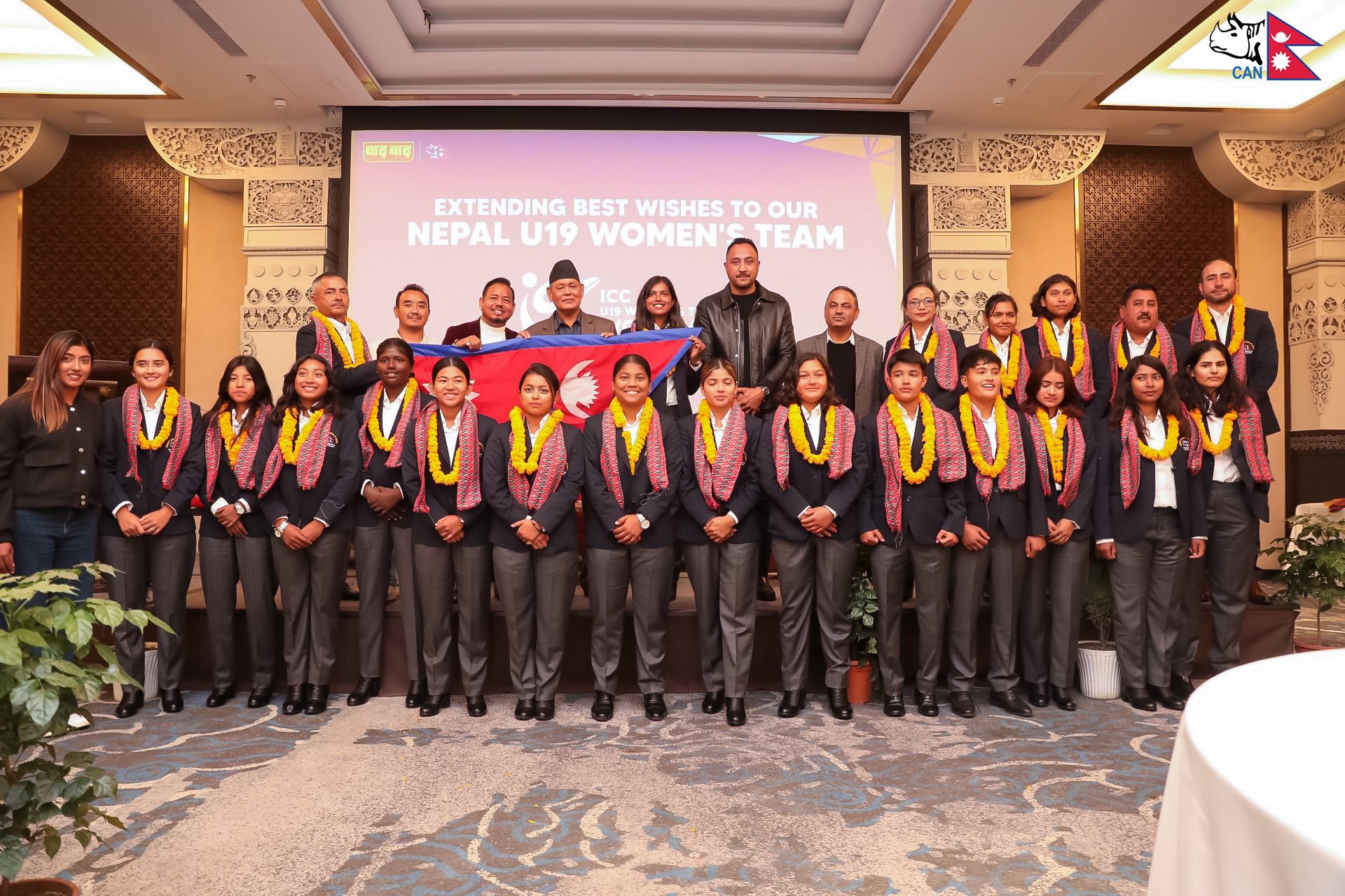 काठमाडौं। आइसिसी यु–१९ महिला ट्वान्टी–२० विश्वकपका लागि नेपाली टोली आज मलेसिया जाँदैछ । मलेसियामा हुन लागेको विश्वकप खेल्न जान लागेको नेपाली टोलीले नेपाल क्रिकेट संघ (क्यान) ले शुक्रबार टोलीको बिदाइ गरिसकेको छ । महेशप्रसाद रिजाल प्रशिक्षक रहेको टोलीको कप्तानी पूजा महतोले गर्नेछिन् । विश्वकप माघ ५ देखि २० सम्म मलेसियामा हुँदैछ ।  क्यानका अनुसार १६ टोली सहभागी हुने विश्वकपको समूह ‘डी’ मा नेपालसहित अस्ट्रेलिया, बंगलादेश र स्कटल्यान्डको टिम रहेका छन् । नेपालका लागि बंगलादेशबाहेक अन्य भने नयाँ प्रतिद्वन्द्वी टोली हुन् ।   नेपालले माघ ५ बाट बंगलादेशसँग खेल्दै प्रतियोगिता सुरु गर्नेछ । यसैगरी नेपालले माघ ७ मा स्कटल्यान्ड र ९ मा अस्ट्रेलियासँग खेल्ने तालिका तय भइसकेको छ । नेपाली टोलीः पूजा महतो (कप्तान), सोनी पाख्रिन (उपकप्तान), साना प्रविन, ज्योत्सनिका मरासिनी, कुसुम गोदार, सावित्रा धामी, किरणकुमारी कुवँर, कृश्मा गुरुङ, रिया शर्मा, सिमाना केसी, स्नेहा महरा, रचना चौधरी, तृष्णा विक, अनु कडायत