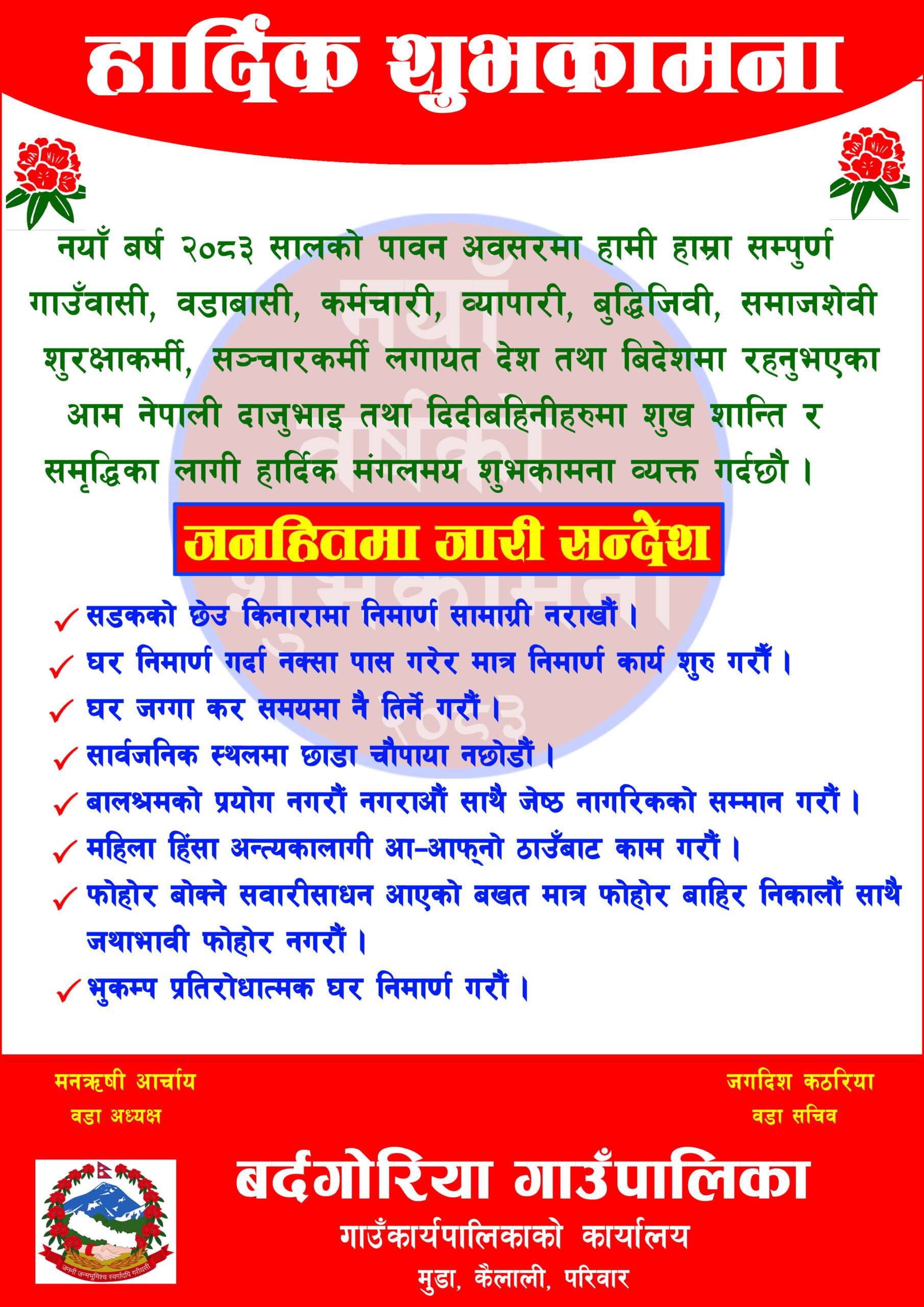 कैलाली — कैलाली जिल्लाको बर्दगोरिया गाउँपालिका–३ रानीकुण्डा, खैरेनीस्थित शिवशक्ति ग्रामीण विद्युत सहकारी संस्था लिमिटेडको नयाँ कार्यसमिति निर्विरोध रूपमा चयन गरिएको छ। संस्थाको अध्यक्षमा दल बहादुर तिरुवा चयन भएका छन्।   उपाध्यक्षमा शिवचरण डंगौरा थारु, सचिवमा गोविन्द बहादुर बुडाक्षेत्री र कोषाध्यक्षमा अमृता देवी खत्री चयन भएका छन्।   सदस्यहरूमा...
