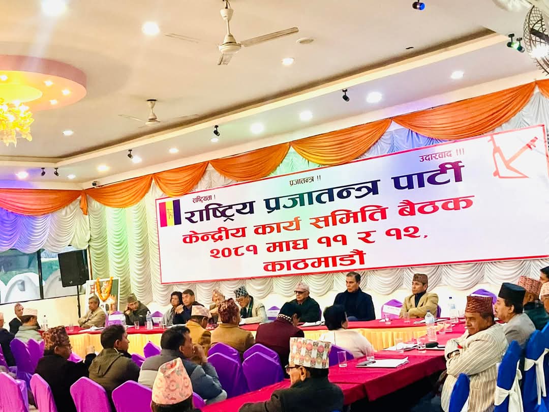काठमाडौं । राष्ट्रिय प्रजातन्त्र पार्टीको केन्द्रीय समिति बैठक सकिएको छ ।गत शुक्रबार देखि सुरू भएको बैठक एकदिन लम्बिएर आज सकिएको हो ।`स्वस्थ बहसले पार्टीलाई अझ गतिशील र अझ एकताबद्ध बनाउन उर्जा र सामर्थ्य प्रदान गर्दछ, प्रचार बिभाग प्रमुख मोहन श्रेष्ठले भने, `तीन दिनसम्म चलेको राप्रपाको केन्द्रीय कार्यसमितिको बैठकमा विभिन्न प्रतिवेदनहरुमाथिको छलफल सकिएको छ। ` उनका अनुसार अब केही बेरमा पत्रकार सम्मेलन मार्फत निर्णय सार्वजनिक हुदैँछ।