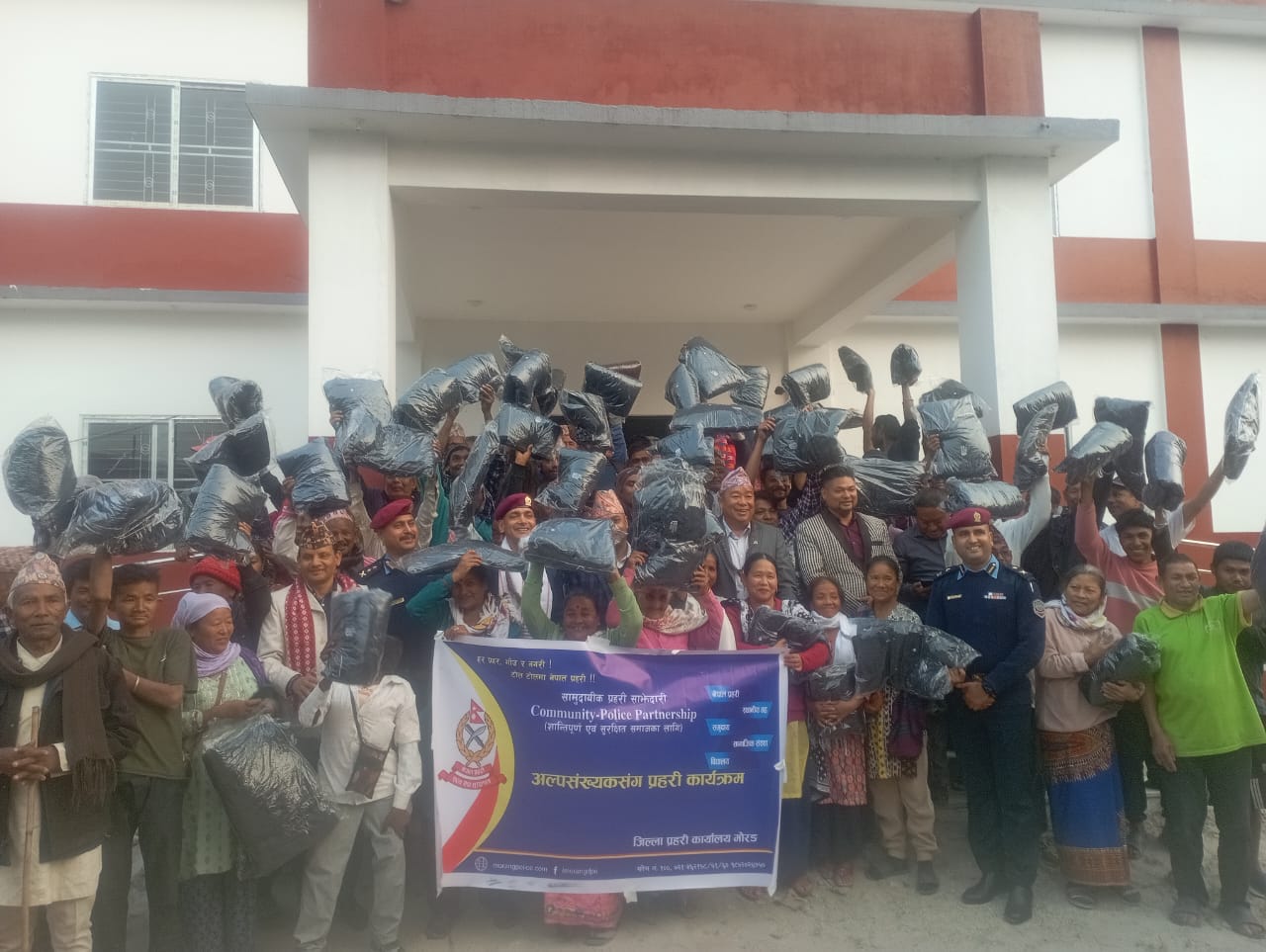 बहाना ‘चिसो’ बनाएर।मिक्लाजुङ गाउँपालिका वडा नम्बर ९ का अल्पसंख्यकलाई व्यापारीले किनिदिएको ज्याकेट बाँड्न मोरङका प्रमुख जिल्ला अधिकारी इन्द्रदेव यादव, कोशी प्रदेशका प्रहरी प्रमुख डिआइजी राजन अधिकारी र मोरङका एसपी नारायण चिमरिया पुगेका थिए।‘अल्पसंख्यकसँग प्रहरी’ कार्यक्रम लिएर पुगेका सुरक्षा अधिकृतहरूलाई ज्याकेट गोरधनदास कमलावति परोपकारी प्रतिष्ठान विराटनगरका अध्यक्ष तथा उद्योगपति जगदीश अग्रवालले दिएका थिए। व्यापारी अग्रवालले दिएको ज्याकेट मिक्लाजुङका ८० घरधुरीलाई बाँडिएको मोरङ प्रहरी प्रवक्ता प्रहरी नायब उपरीक्षक वेदप्रकाश जोशीले बताए।कार्यक्रममा दलका प्रतिनिधि, स्थानीय निकायका प्रतिनिधि, संघ-संस्था, पत्रकार, भद्र भलादमी, बुद्धिजीवी, समाजसेवी र स्थानीय गरी ८० जनाको उपस्थिति रहेको जोशीले बताए।