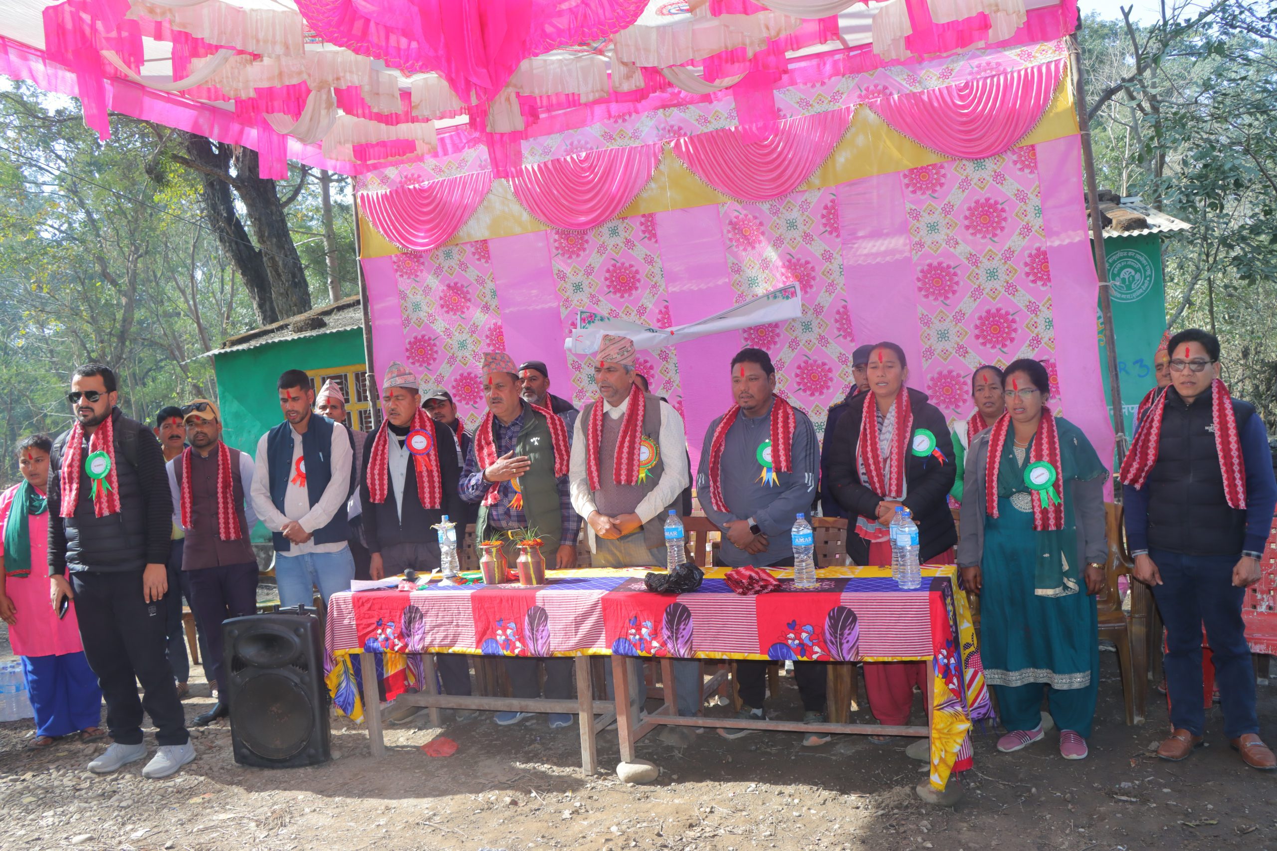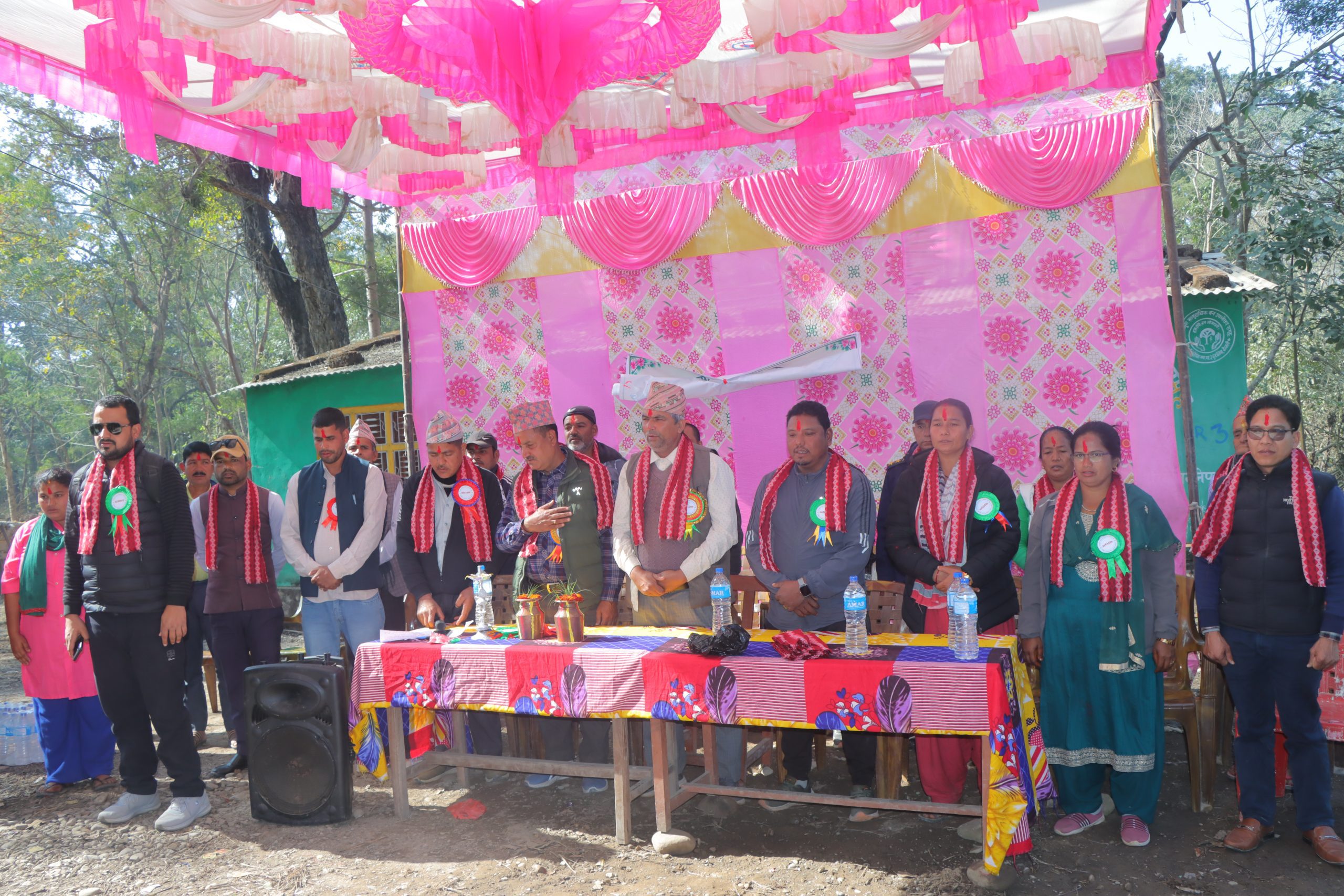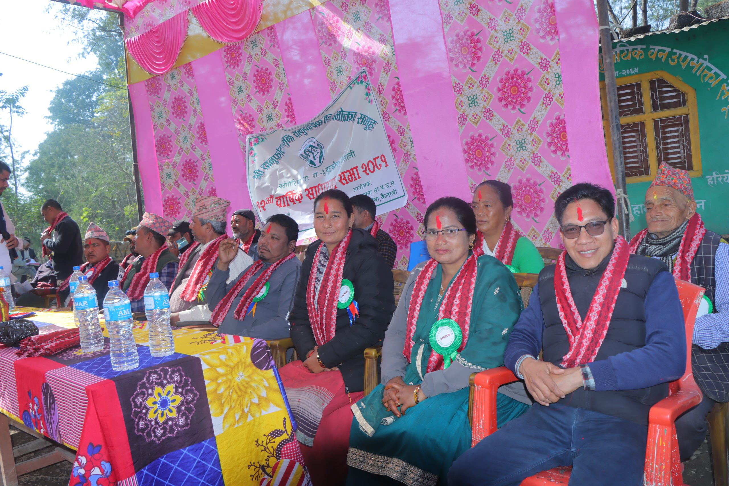 कार्यक्रमको समापन गर्दै वन जोगाउन एक जना अध्यक्ष मात्र भएर नहुने भन्दै अध्यक्ष टेक राज जोशीले सबै उपभोक्ताहरु जागरुक हुने पर्ने बताउनु भयो । वन समिति बाख्रा वितरण , गरिब दिनदुखी अपाङ्ग अशक्त क्यान्सर पीडित हरूलाई आर्थिक सहयोग गर्दै आएको अध्यक्ष जोशीले बताए । कार्यक्रमको सञ्चालन वनका सह- सचिव चक्र बहादुर विष्टले गर्नु भएको थियो। सामुदायिक वन २०६९/०७० मा दर्ता भएको वनमा ३ सय ५९ जना उपभोक्ता आबद्ध रहेका छन्।