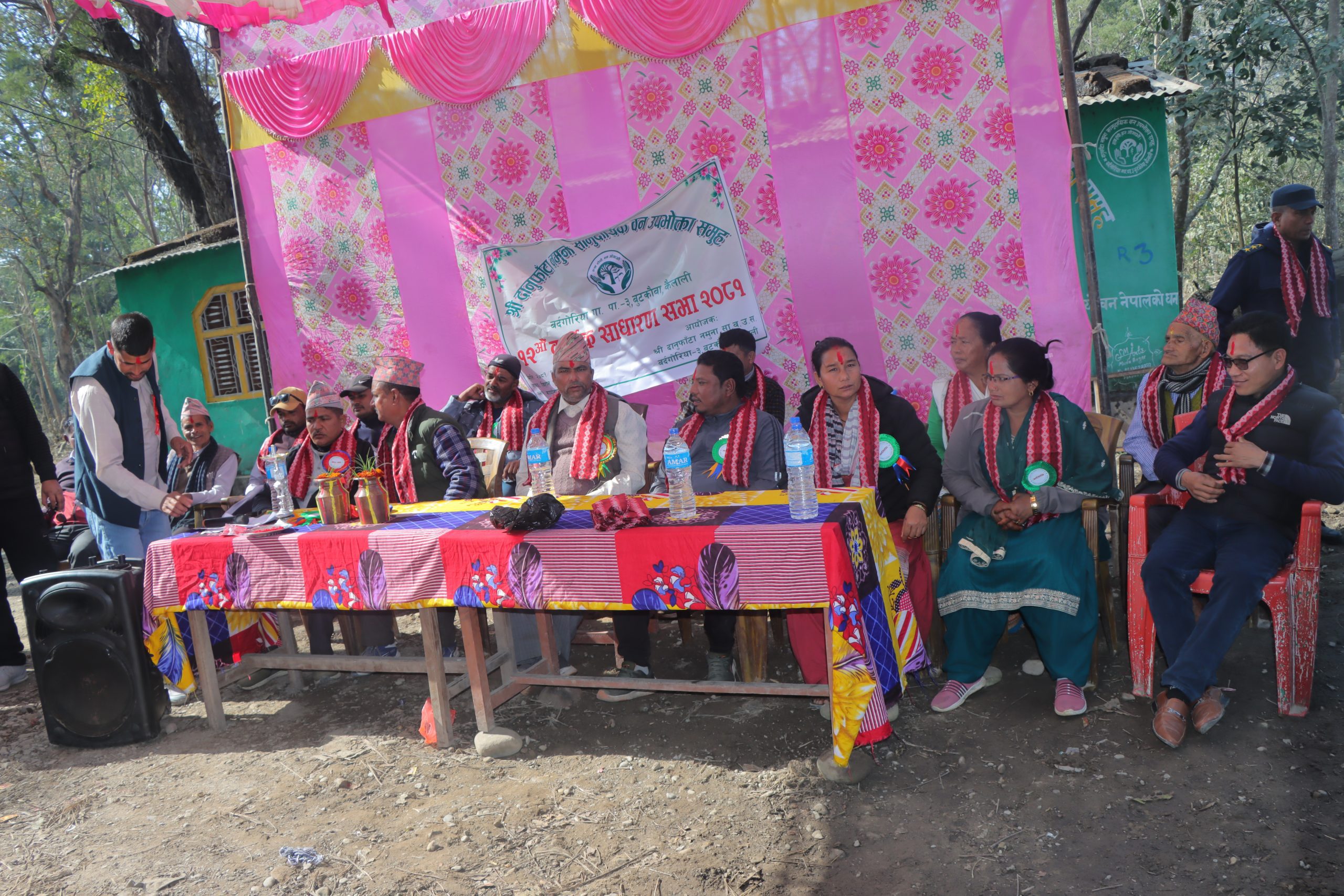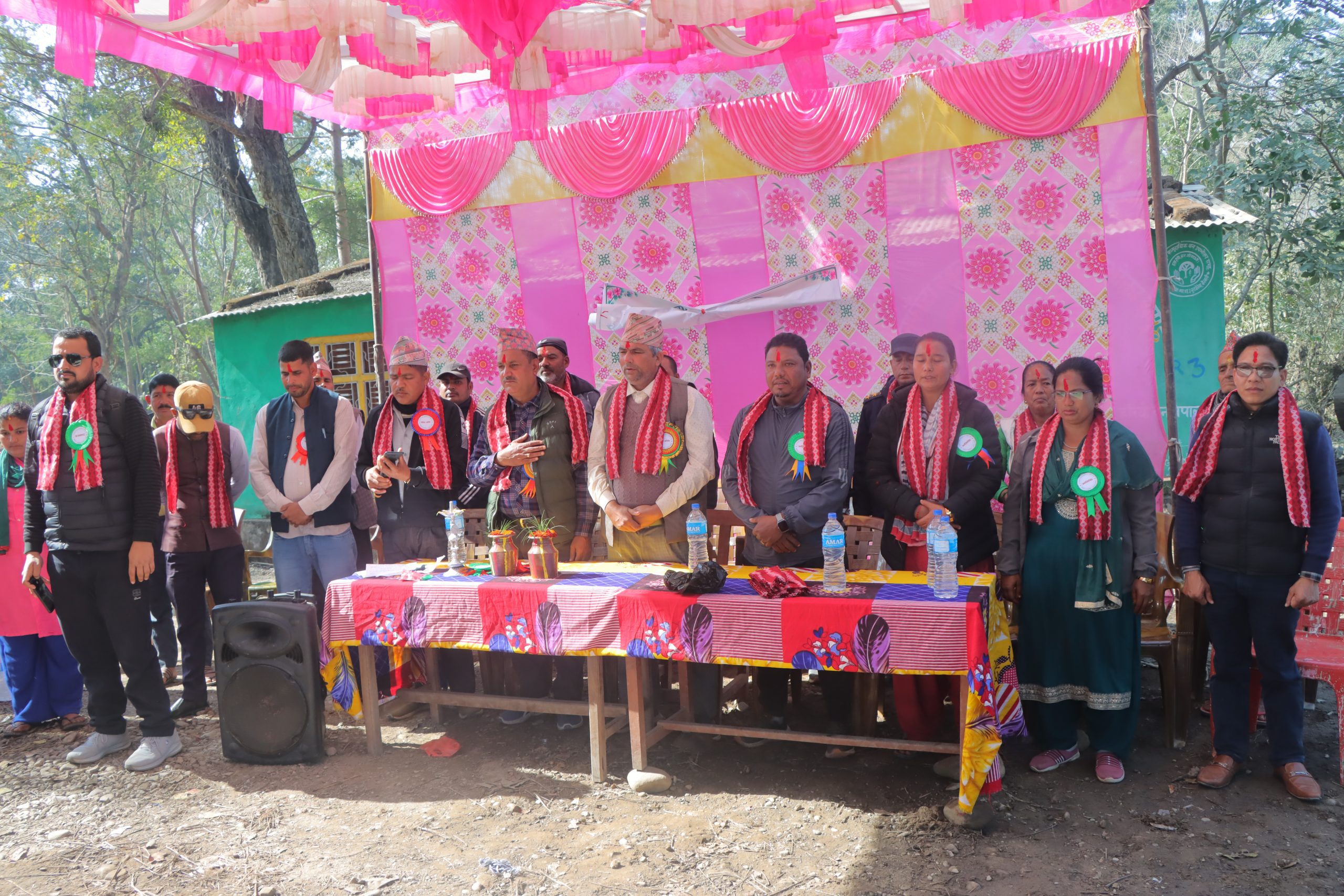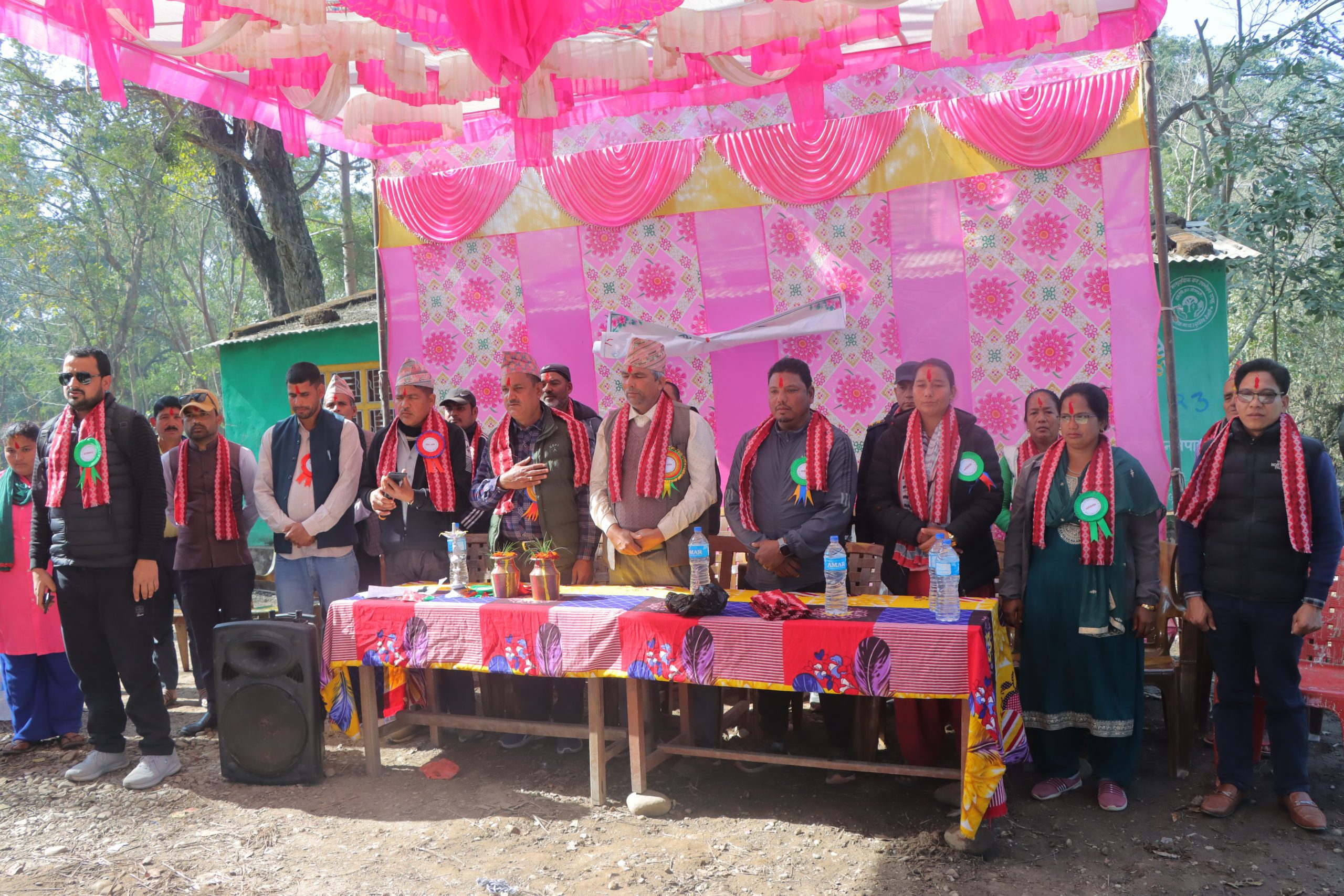 कार्यक्रमको समापन गर्दै वन जोगाउन एक जना अध्यक्ष मात्र भएर नहुने भन्दै अध्यक्ष टेक राज जोशीले सबै उपभोक्ताहरु जागरुक हुने पर्ने बताउनु भयो । वन समिति बाख्रा वितरण , गरिब दिनदुखी अपाङ्ग अशक्त क्यान्सर पीडित हरूलाई आर्थिक सहयोग गर्दै आएको अध्यक्ष जोशीले बताए । कार्यक्रमको सञ्चालन वनका सह- सचिव चक्र बहादुर विष्टले गर्नु भएको थियो। सामुदायिक वन २०६९/०७० मा दर्ता भएको वनमा ३ सय ५९ जना उपभोक्ता आबद्ध रहेका छन्।