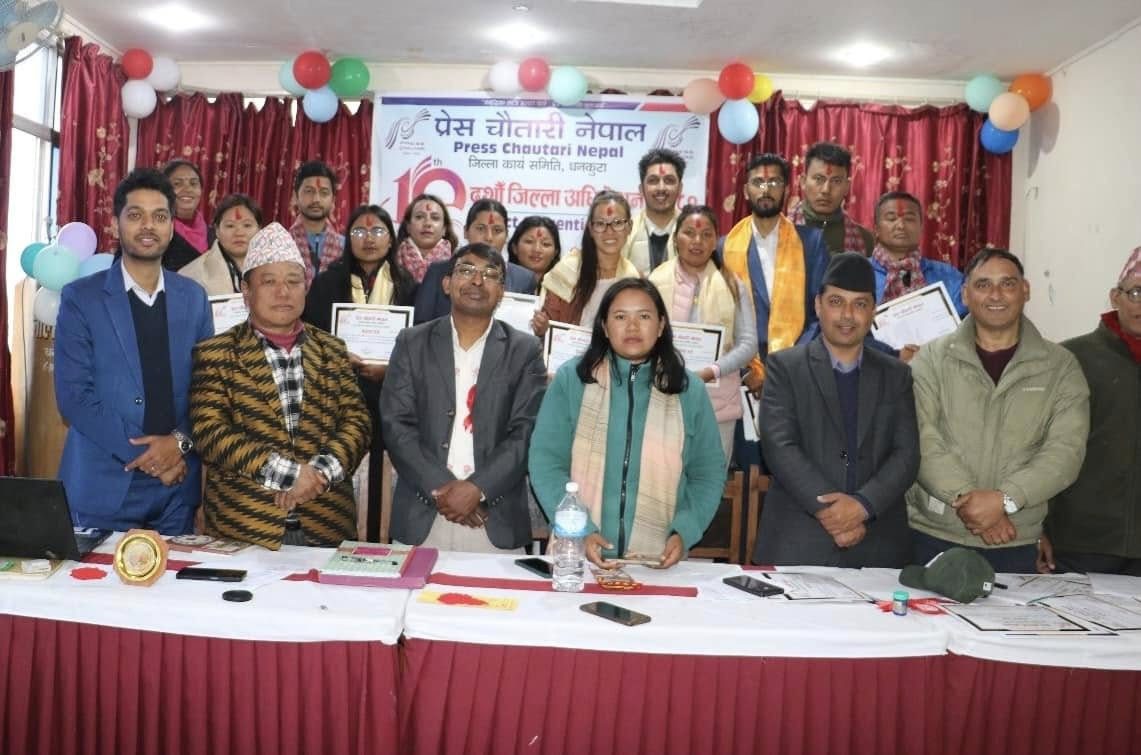 काठमाडौं । प्रेस चौतारी नेपाल धनकुटा र सङ्खुवासभाका अधिवेशन सम्पन्न भएका छन् । दुवै जिल्लामा आइतबार सम्पन्न अधिवेशनले नयाँ नेतृत्व चयन गरेको हो । प्रेस चौतारी नेपाल धनकुटाको १० औँ जिल्ला अधिवेशनले सर्वसम्मत रूपमा नयाँ नेतृत्व चयन गरेको छ । अधिवेशनबाट नारायण राईको अध्यक्षतामा सर्वसम्मत रूपमा नयाँ नेतृत्व चयन भएको हो । प्रेस चौतारी नेपालका केन्द्रीय अध्यक्ष गणेश बस्नेतले उद्घाटन गरेको अधिवेशनको उद्घाटन कार्यक्रममा दुई जना पत्रकारसमेत सम्मानित भएका छन ।कार्यक्रममा पत्रकार सोभिस चेम्जोङ र बलराम दाहाललाई पुरस्कृत सहित सम्मान गरिएको हो ।