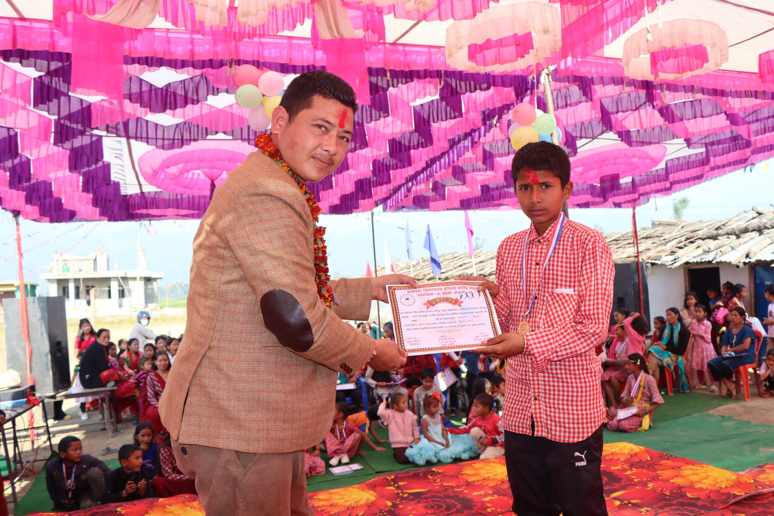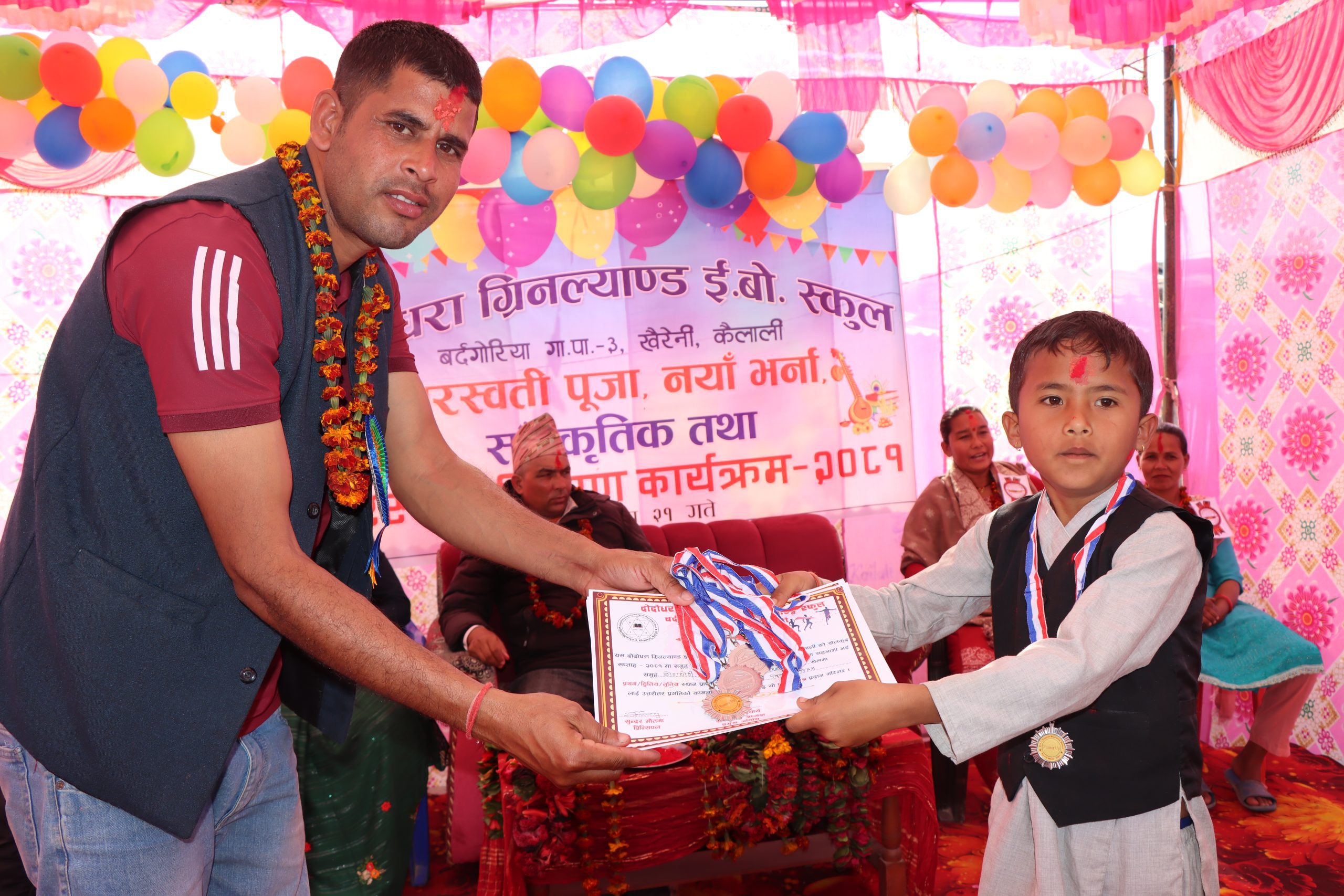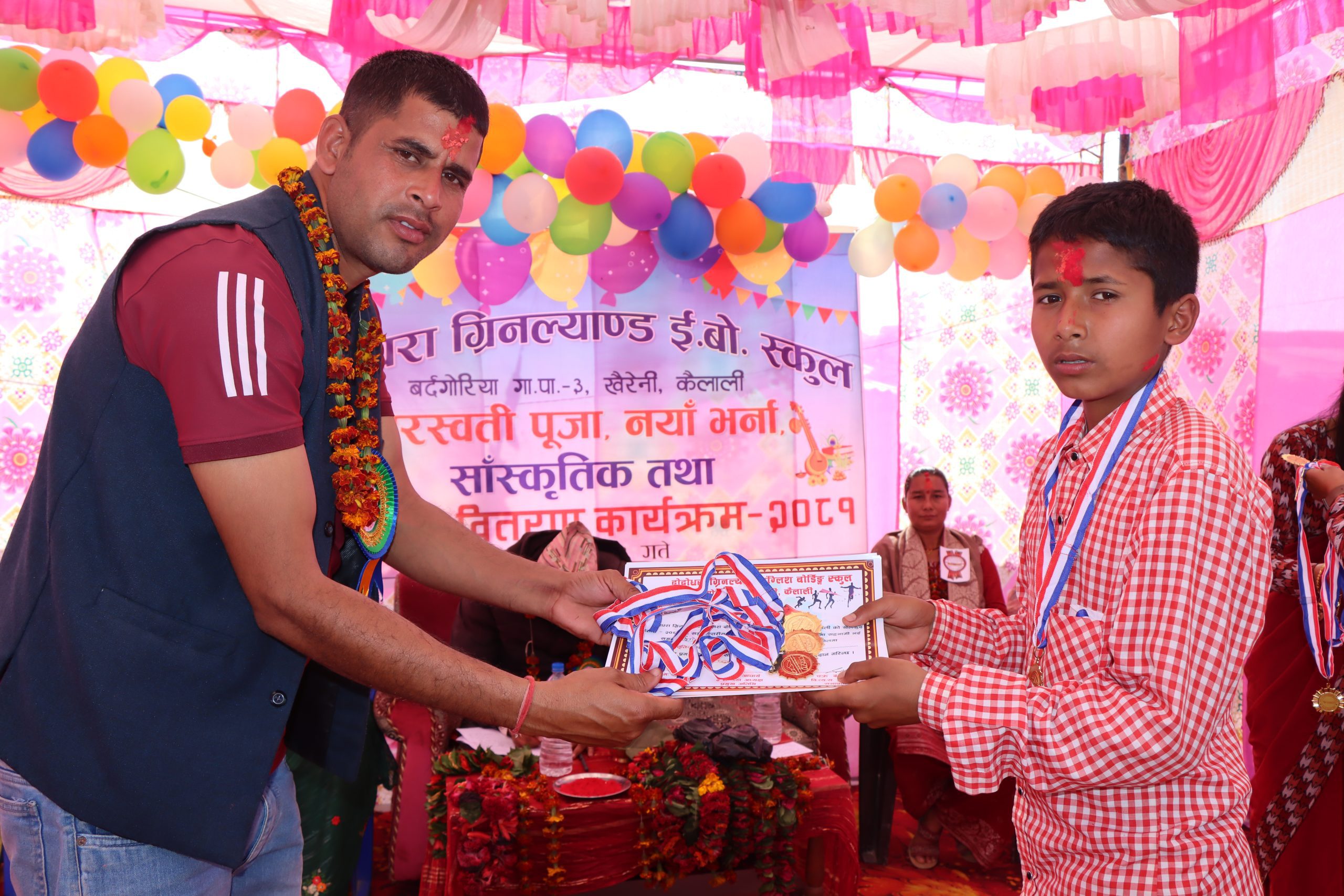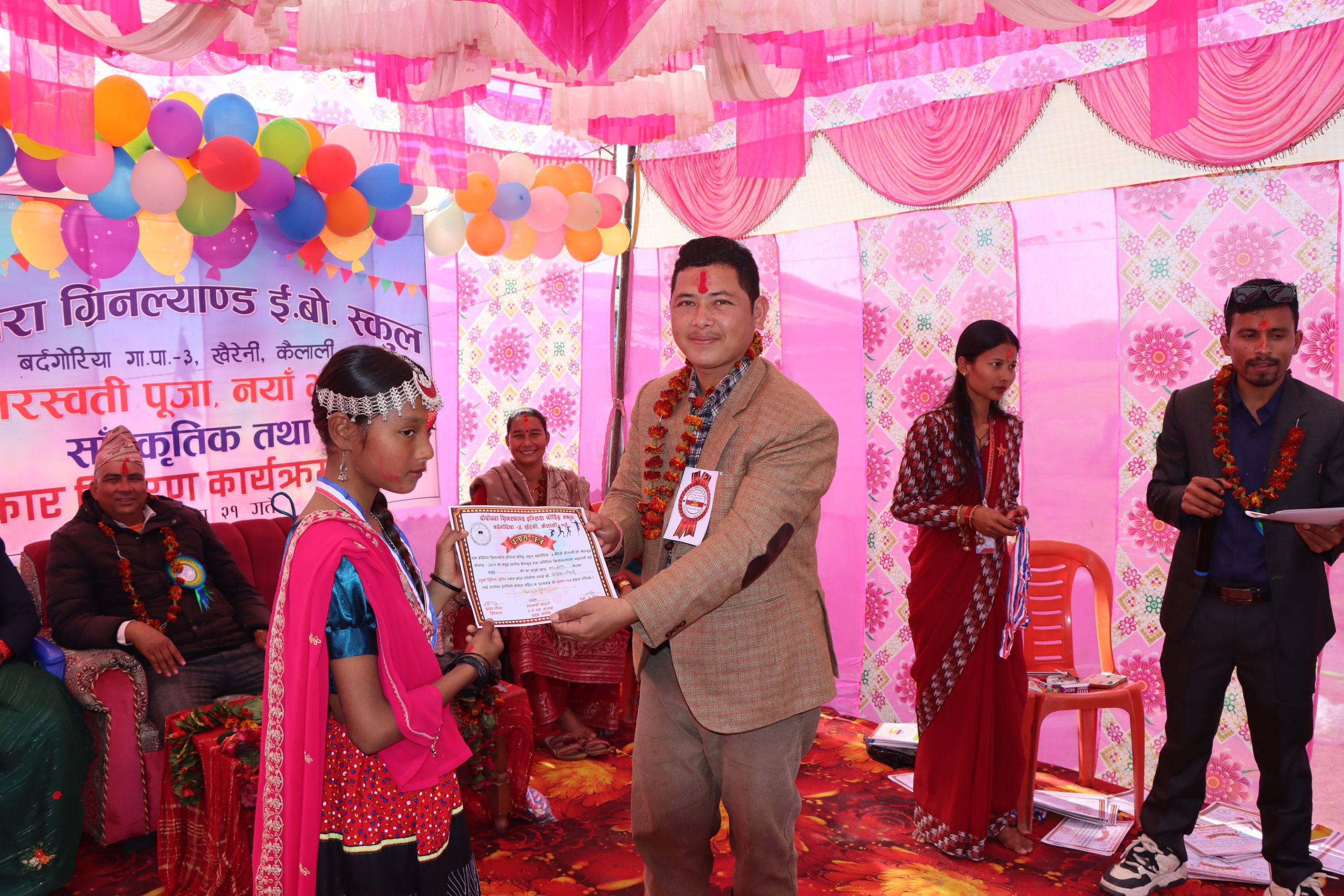 स्कुलले सप्ताह व्यापी कार्यक्रममा भाग लिएका विद्यार्थीहरूलाई विभिन्न खेलकुद लगायत अतिरिक्त क्रियाकलाप सँगै उत्कृष्ट नतिजा ल्याउने विद्यार्थीहरूलाई पुरस्कार वितरण गरिएको थियो ।स्कुलका अध्यक्ष चक्र बहादुर विष्टको सभाध्यक्षमा सम्पन्न पुरस्कार वितरण कार्यक्रममा विद्यार्थीहरूले विभिन्न सांस्कृतिक कार्यक्रमहरू गरेका थिए । बर्दगोरिया गाउँपालिका वडा नं ३ का वडा अध्यक्ष मनऋषि आचार्यकाे प्रमुख अतिथिमा सम्पन्न कार्यक्रममा विद्यालयकी लेखापाल पुष्पा पुन मगरले स्वागत गरेकी थिइन् ।