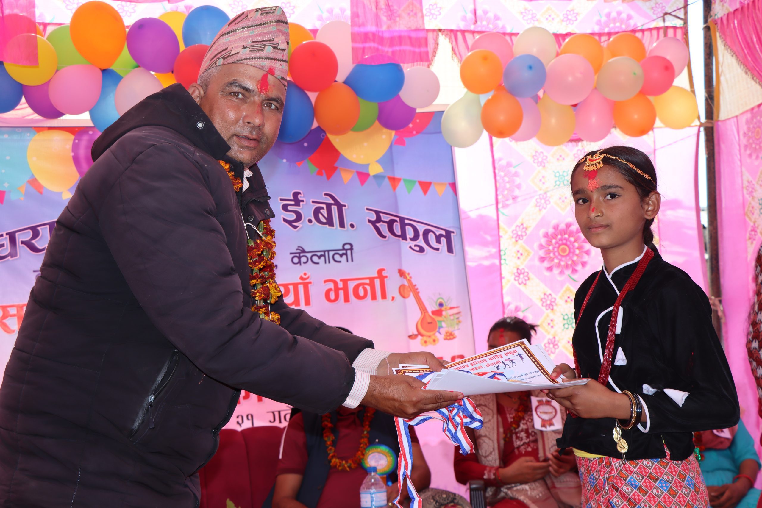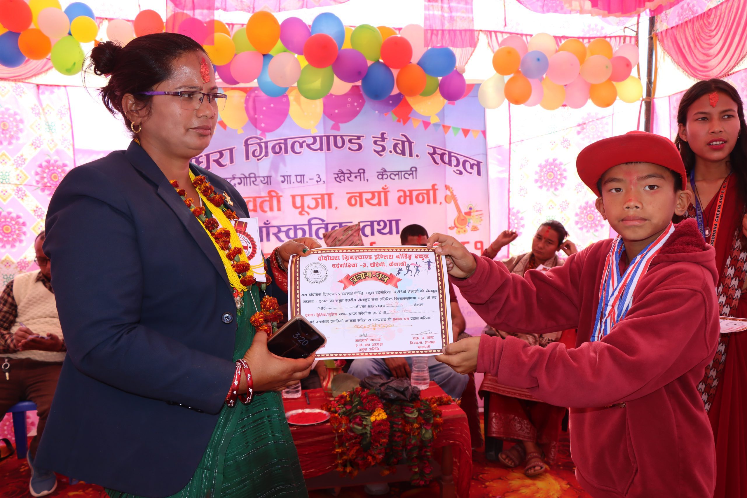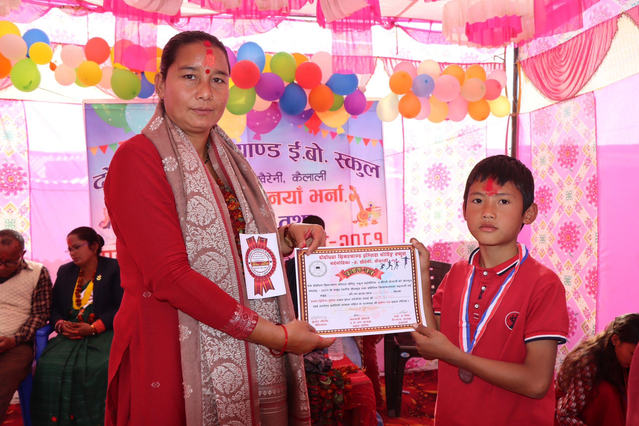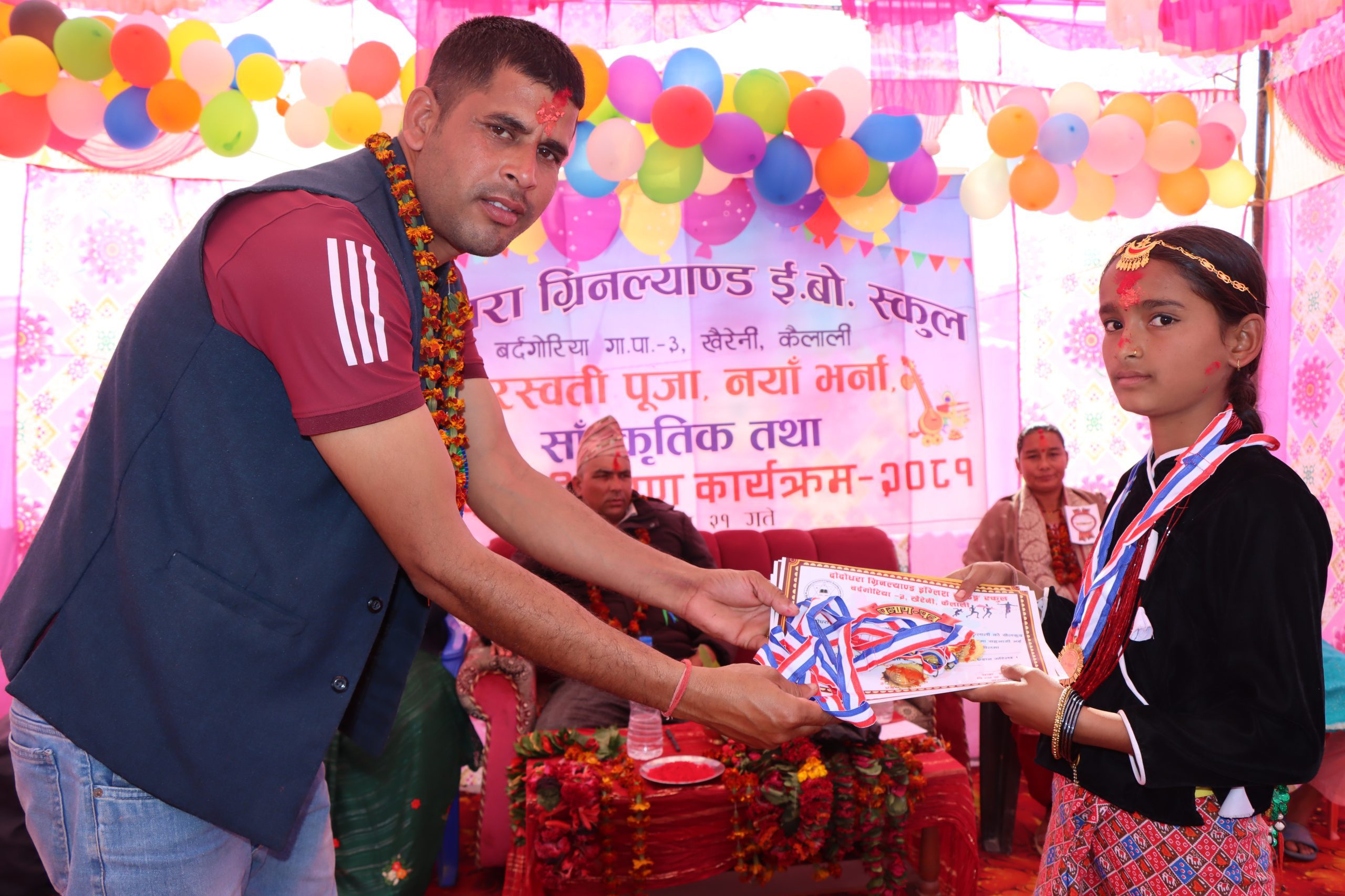 स्कुलले सप्ताह व्यापी कार्यक्रममा भाग लिएका विद्यार्थीहरूलाई विभिन्न खेलकुद लगायत अतिरिक्त क्रियाकलाप सँगै उत्कृष्ट नतिजा ल्याउने विद्यार्थीहरूलाई पुरस्कार वितरण गरिएको थियो ।स्कुलका अध्यक्ष चक्र बहादुर विष्टको सभाध्यक्षमा सम्पन्न पुरस्कार वितरण कार्यक्रममा विद्यार्थीहरूले विभिन्न सांस्कृतिक कार्यक्रमहरू गरेका थिए । बर्दगोरिया गाउँपालिका वडा नं ३ का वडा अध्यक्ष मनऋषि आचार्यकाे प्रमुख अतिथिमा सम्पन्न कार्यक्रममा विद्यालयकी लेखापाल पुष्पा पुन मगरले स्वागत गरेकी थिइन् ।