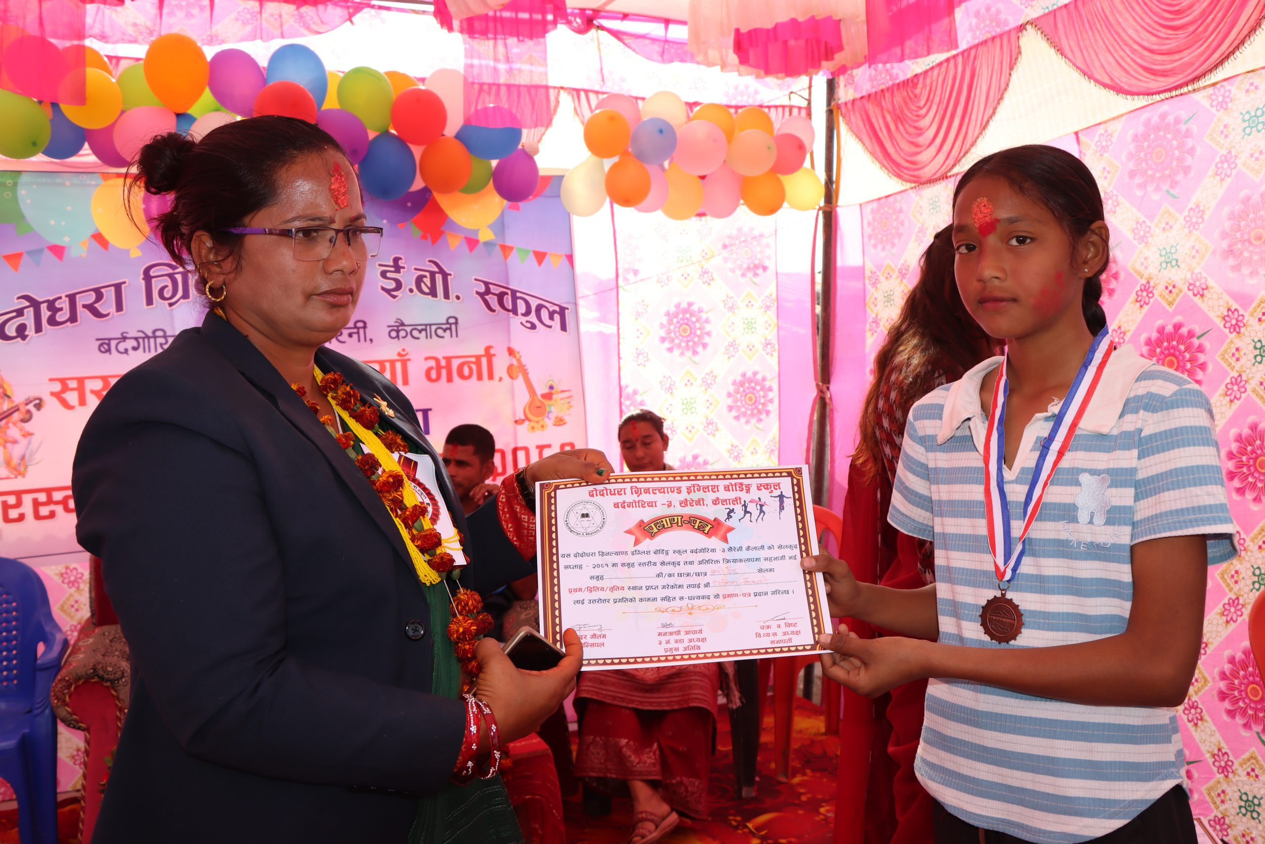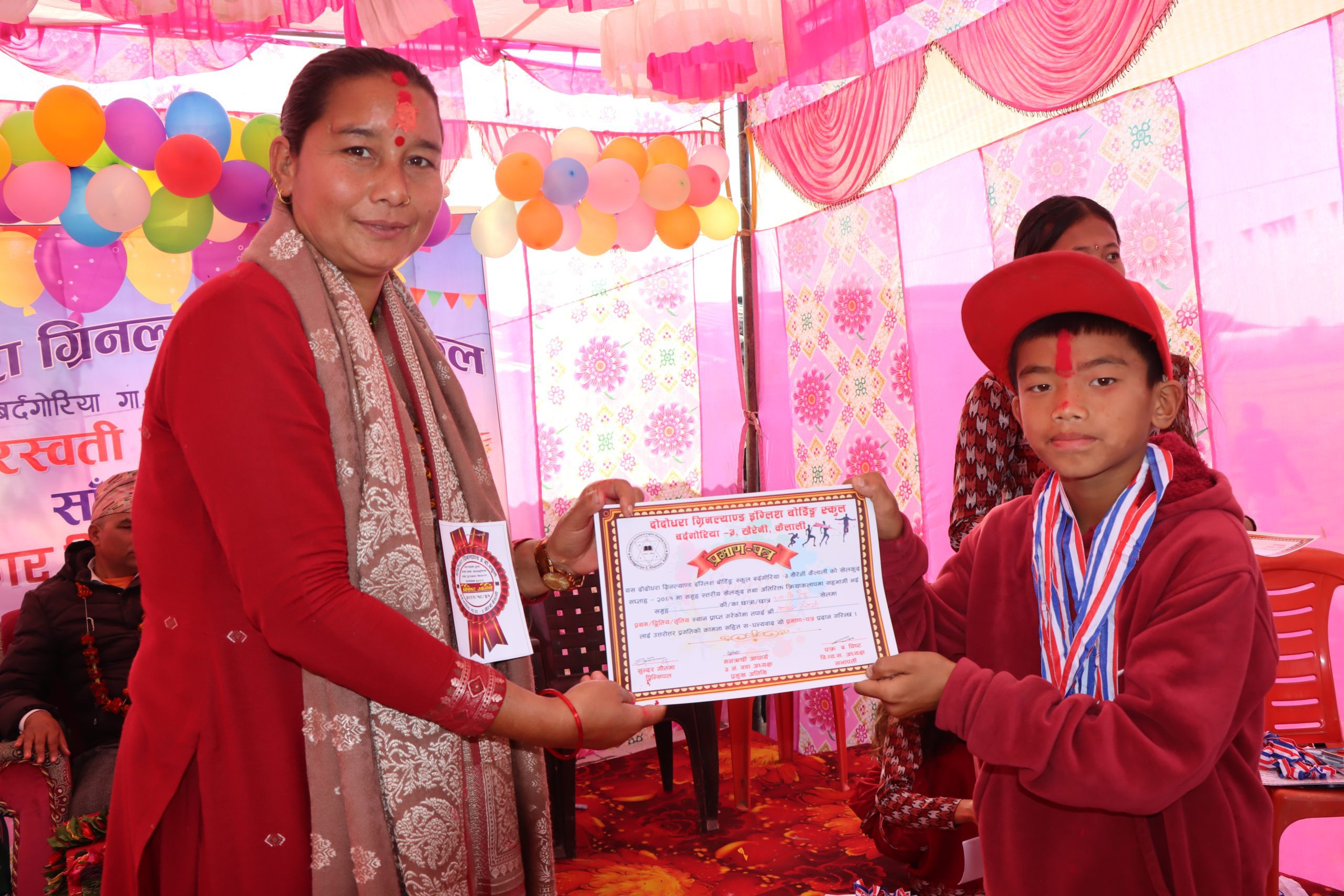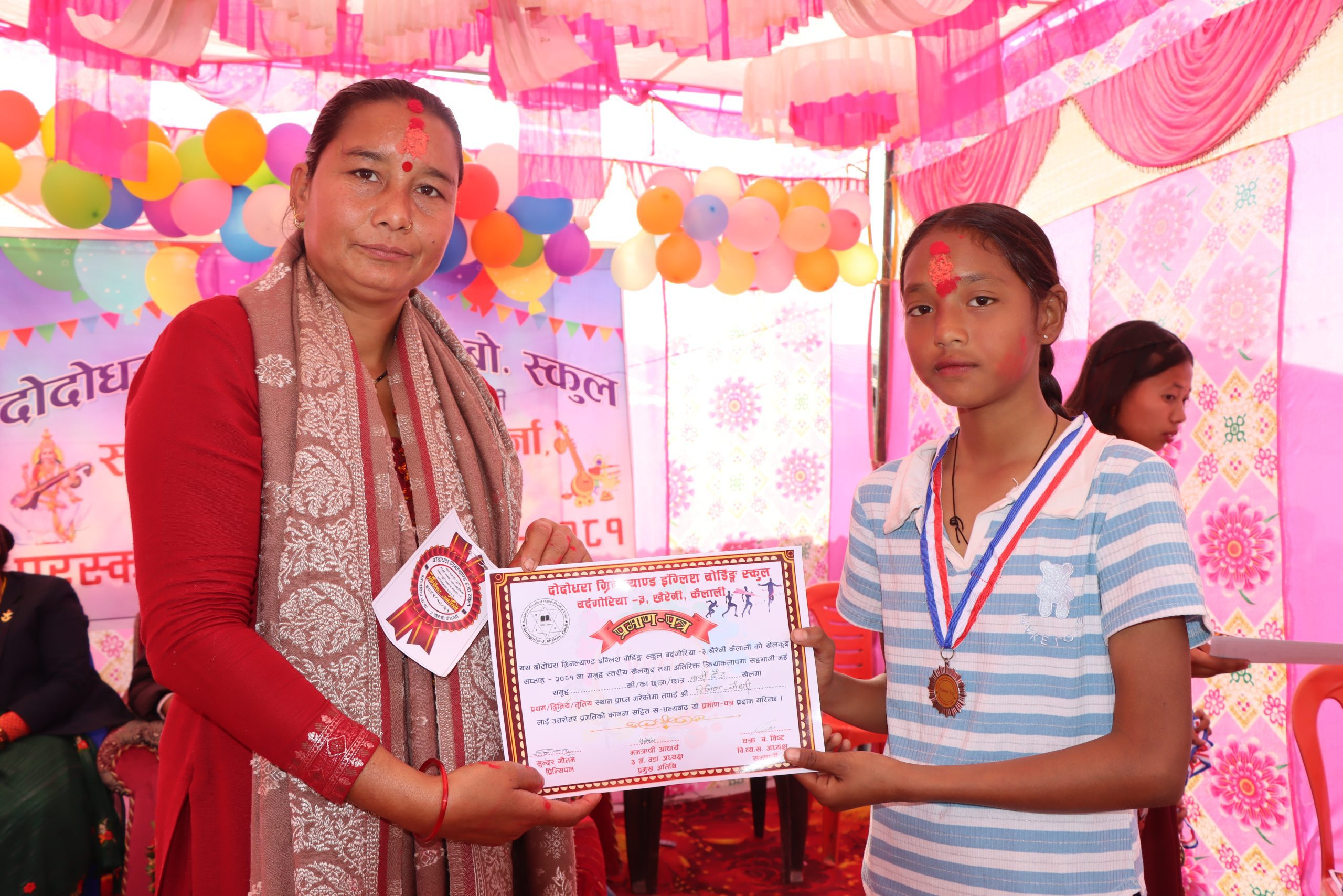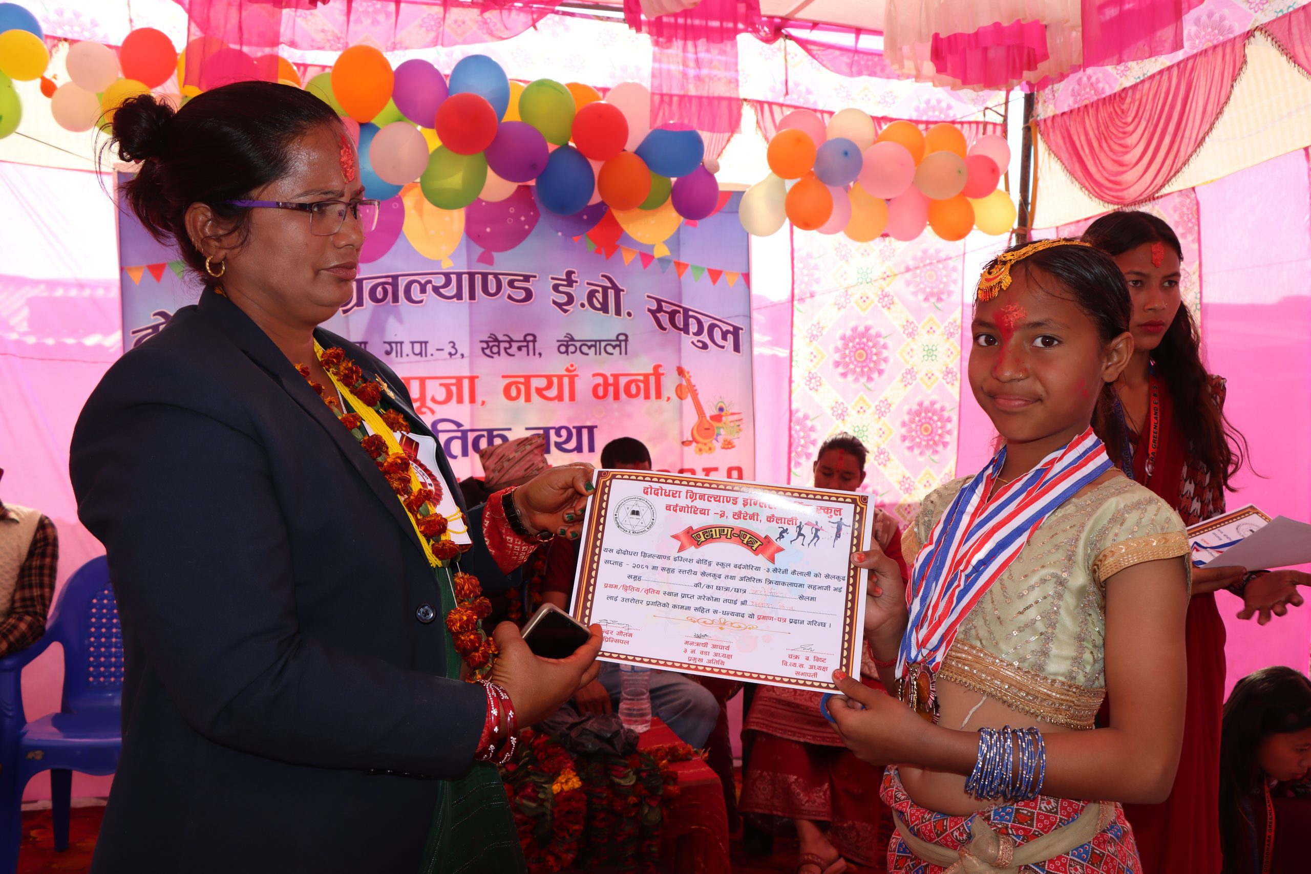 स्कुलले सप्ताह व्यापी कार्यक्रममा भाग लिएका विद्यार्थीहरूलाई विभिन्न खेलकुद लगायत अतिरिक्त क्रियाकलाप सँगै उत्कृष्ट नतिजा ल्याउने विद्यार्थीहरूलाई पुरस्कार वितरण गरिएको थियो ।स्कुलका अध्यक्ष चक्र बहादुर विष्टको सभाध्यक्षमा सम्पन्न पुरस्कार वितरण कार्यक्रममा विद्यार्थीहरूले विभिन्न सांस्कृतिक कार्यक्रमहरू गरेका थिए । बर्दगोरिया गाउँपालिका वडा नं ३ का वडा अध्यक्ष मनऋषि आचार्यकाे प्रमुख अतिथिमा सम्पन्न कार्यक्रममा विद्यालयकी लेखापाल पुष्पा पुन मगरले स्वागत गरेकी थिइन् ।