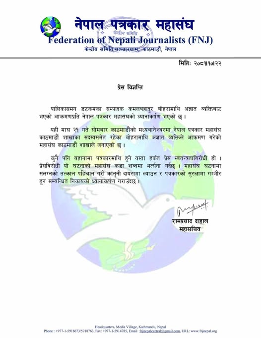 सम्पादक बोहरामाथि आक्रमण, पत्रकार महासंघको भर्त्सना