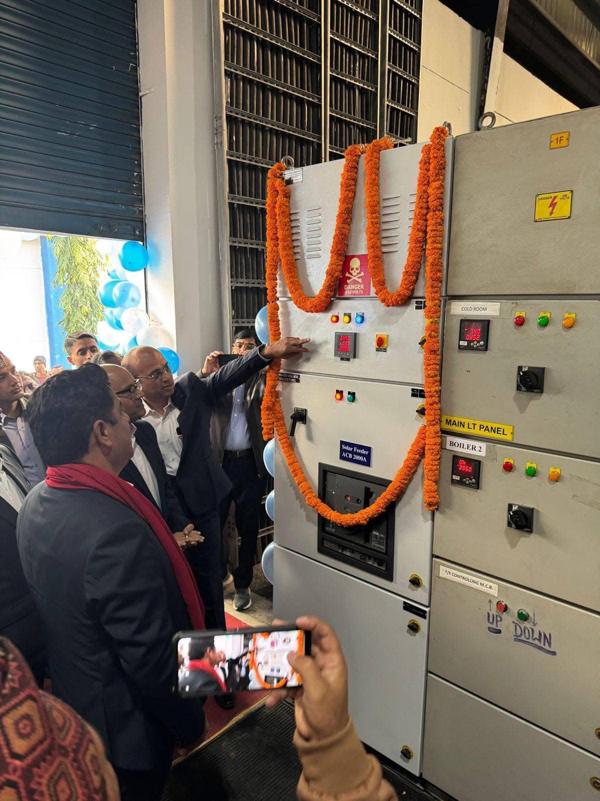 काठ्माडौं। उद्योग, वाणिज्य तथा आपूर्ति मन्त्री माननीय दामोदर भण्डारीले नवलपरासी (बर्दघाट सुस्ता पश्चिम) जिल्ला स्थित औद्योगिक तथा व्यापारिक गतिविधिहरूको अवलोकन र केहि विषेश परियोजनाहरूको उद्घाटन गरेका छन ।आज उनले २ मेगावाट क्षमताको सोलार प्लान्ट उद्घाटन गरेका हुन । नवलपरासीको रामग्रामस्थित अरुण वेभरेज प्रालिमा २ मेगावाटको सौर्य ऊर्जा प्लान्टको उद्घाटन गर्दै स्वच्छ र नविकरणीय ऊर्जाको प्रवद्र्धन तथा विकास गर्न सरकार कटिबद्ध रहेकोसमेत बताए ।उनका अनुसार स्वदेशी उत्पादनमा जोड दिनुका साथै ऊर्जा आत्मनिर्भरता हासिल गर्ने दिशामा यो एक महत्वपूर्ण कोसेढुंगा सावित हुने जनाए ।