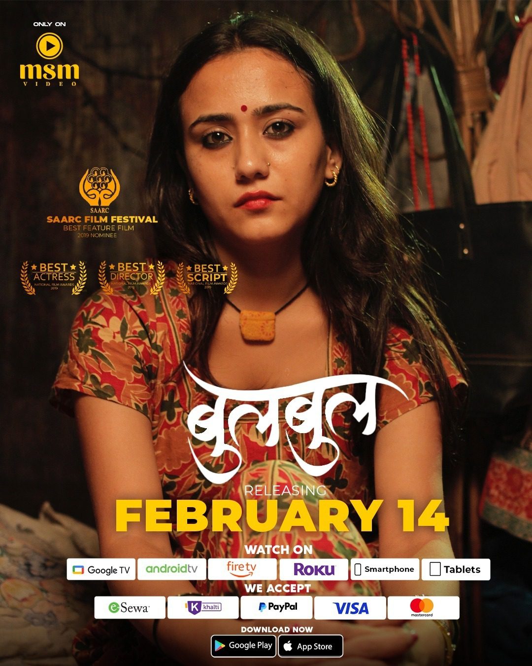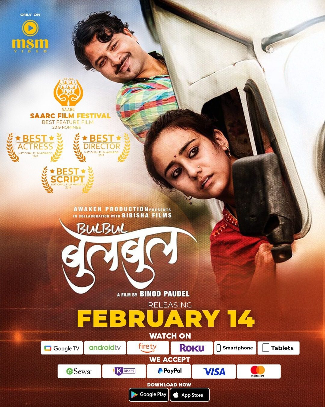 काठमाडौं । सन् २०१९ मा भ्यालेन्टाइन डे मै हलमा प्रदर्शनमा आएको चलचित्र ‘बुलबुल’ एमएसएम एपमा भ्यालेन्टाइन डे कै दिन २०२५ को फेब्रुवरी १४ मा रिलिज हुने भएको छ ।एमएसएम एपमा विश्वका धेरै देशबाट मोबाइल, गुगल, टीभी, एन्ड्रोइड, अमेजन फायर स्टिक टिभी, सामसुङ टीभी, एलजी टीभी, एप्पल टीभी, हिसेन्स टीभी, भिडियो टीभी, रोकु टीभी एप र कम्प्युटरमा पनि उपलब्ध छ । यसैले हरेक वर्गका दर्शकले आफूले मनपर्ने फिल्म सजिलै हेर्न पाउँछन् ।