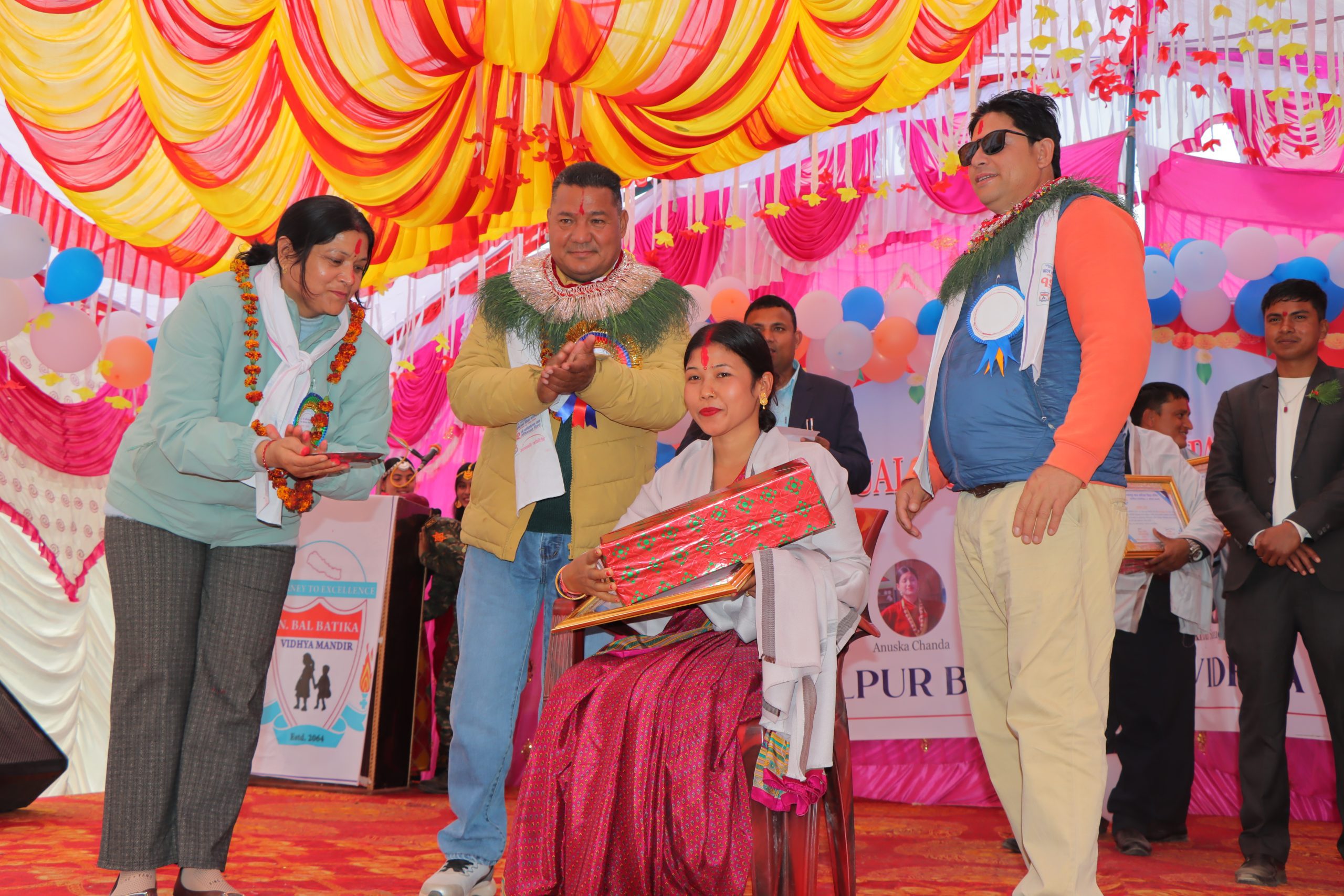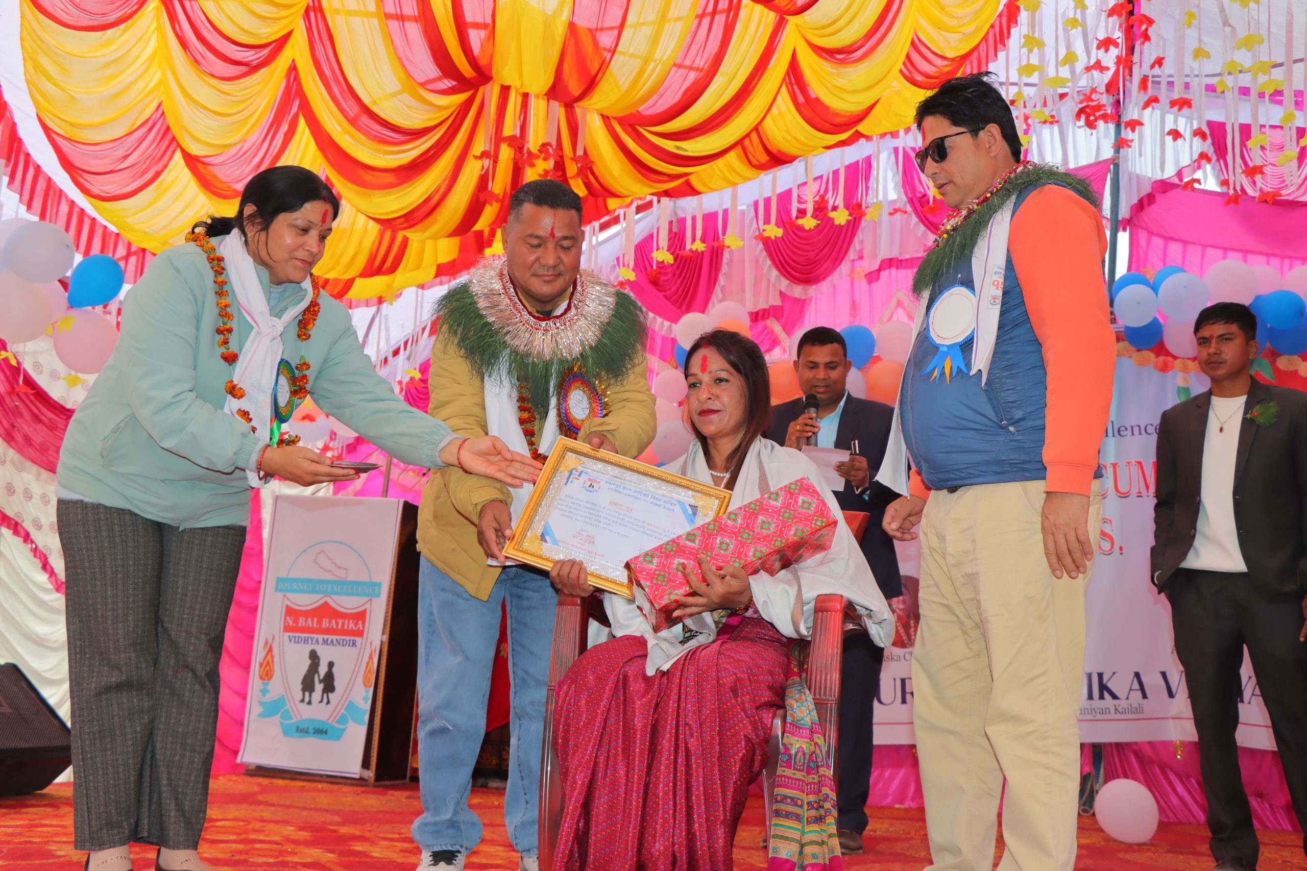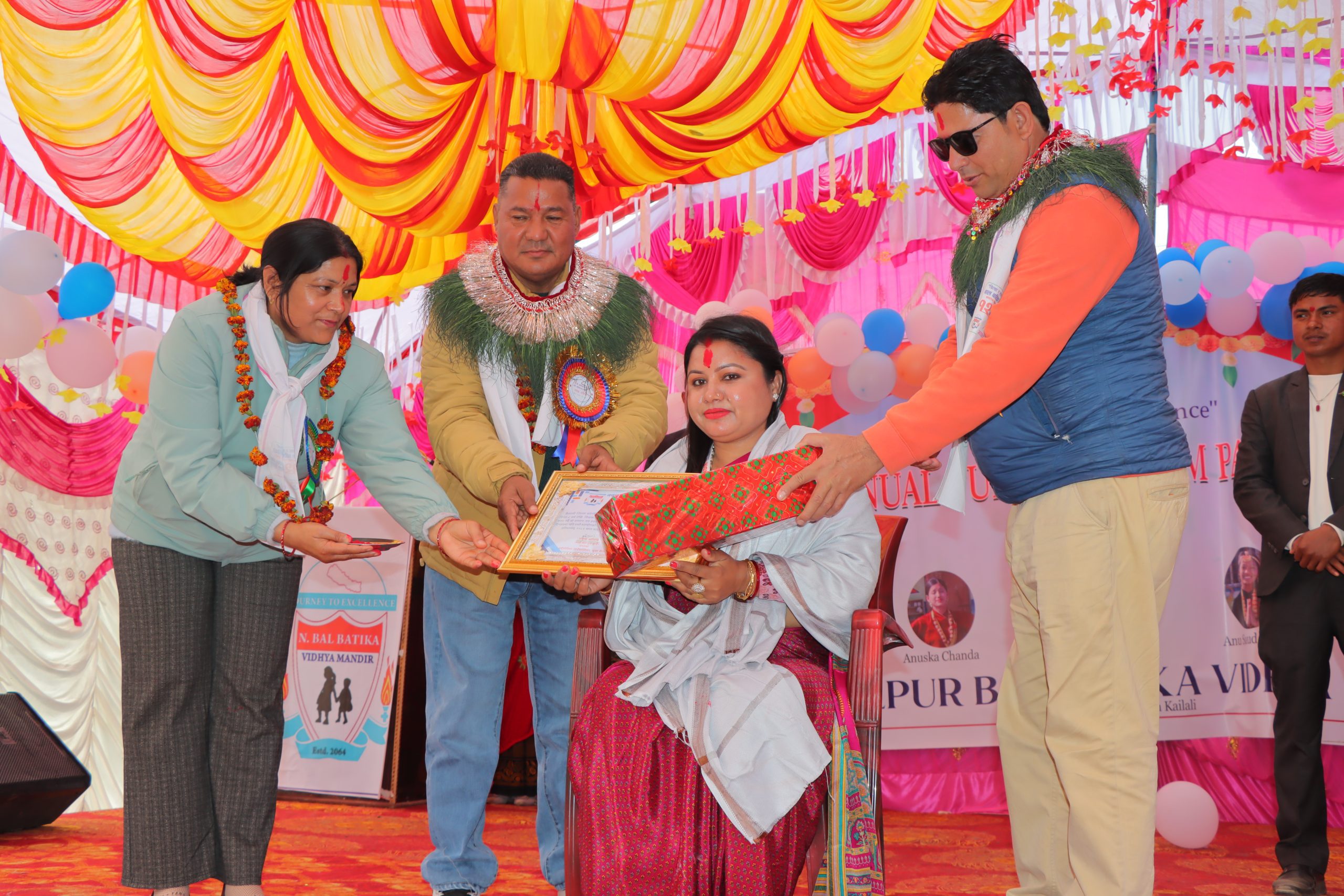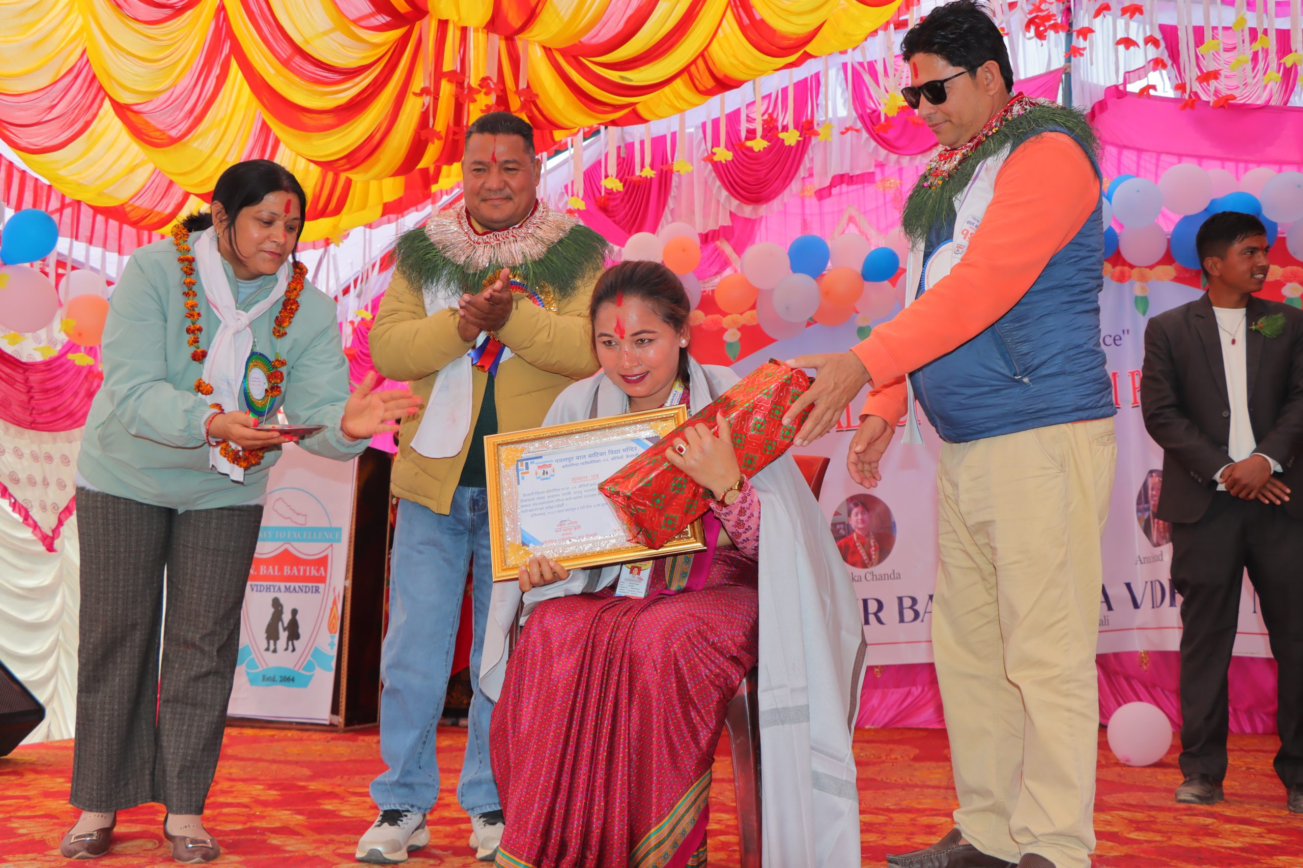 बिधालयले स्थापना काल देखि आज सम्म अध्यापनरत शिक्षक धन बहादुर बोहरा, प्रिन्सिपल हर्क ओड,गोबिन्द मिश्र, बृजलाल चौधरी, शिक्षिका जुलि रावल, दिपा बोगटी ,संगीता चौधरी, बाबा चन्द,उषा बम, सुचना बम लगाएतलाई दोशल्ला,र प्रमाणपत्रले सम्मान गरेको छ । साथै बिधालयमा हुने प्रत्येक कार्यक्रममा नृत्य प्रशिक्षण गराई सहयोग गरेकोमा खुश्बु मल्ललाई समेत दोशल्ला र प्रमाणपत्रले सम्मान गरेको थियो ।