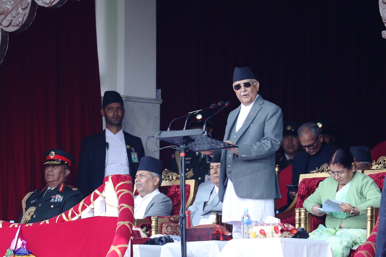 काठमाडाैं । प्रधानमन्त्री केपी ओली प्रजातन्त्र दिवसकाे अवसरमा बुधबार टुँडिखेलमा आयाेजित समाराेहमा सरिक भएका छन् । उनले मूल समाराेहलाई सम्बाेधन गर्दै फागुन ७ गतेले ल्याएकाे परिवर्तनबारे चर्चा पनि गरे ।प्रधानमन्त्रीले फागुन ७ ले शासनको स्वरुप मात्रै फेरेको होइन, हुकुमी निगाहबाट हुने पजनी फेरेर निजामती प्रशासनको जग हालेकाे बताए । आजको दिन नेपालीको जीवनमा सर्वाधिक महत्वको दिन भएकाे र बलिदानपूर्ण संघर्षद्वारा आफूलाई रैतीबाट जनताको दर्जामा पुर्याएको दिन भएकाे ओलीले बताए ।