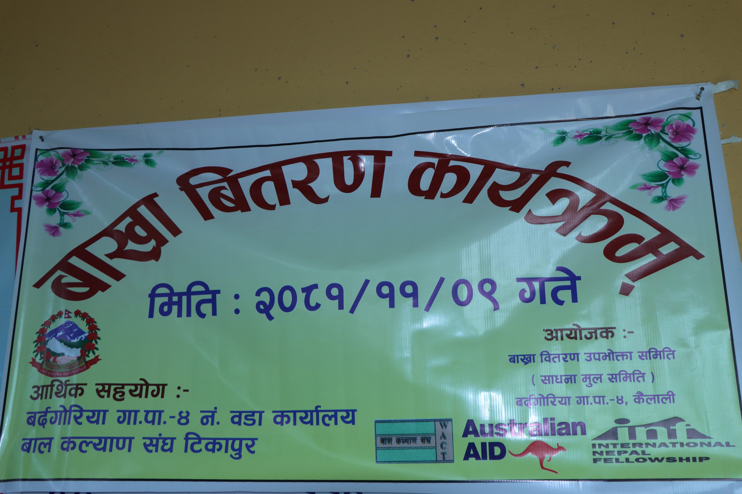 वडा कार्यालयले निःशुल्क उपलब्ध गराएको बाख्रामा वडा कार्यालको र बालकल्याण संघ टिकापुरको आर्थिक सहयोग रहेको छ।