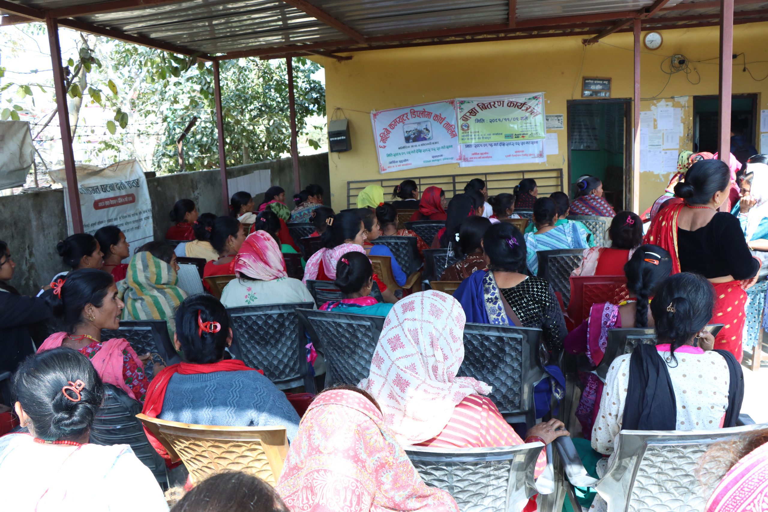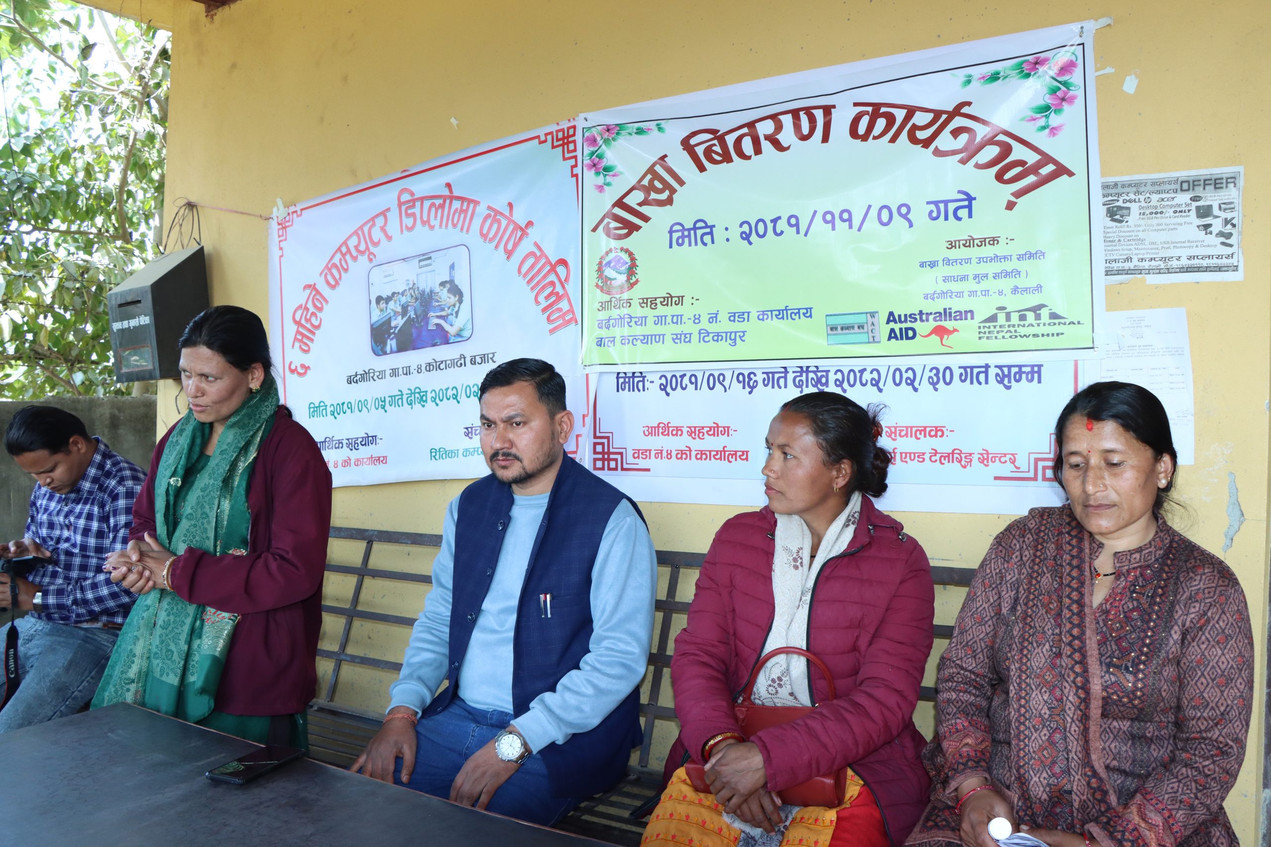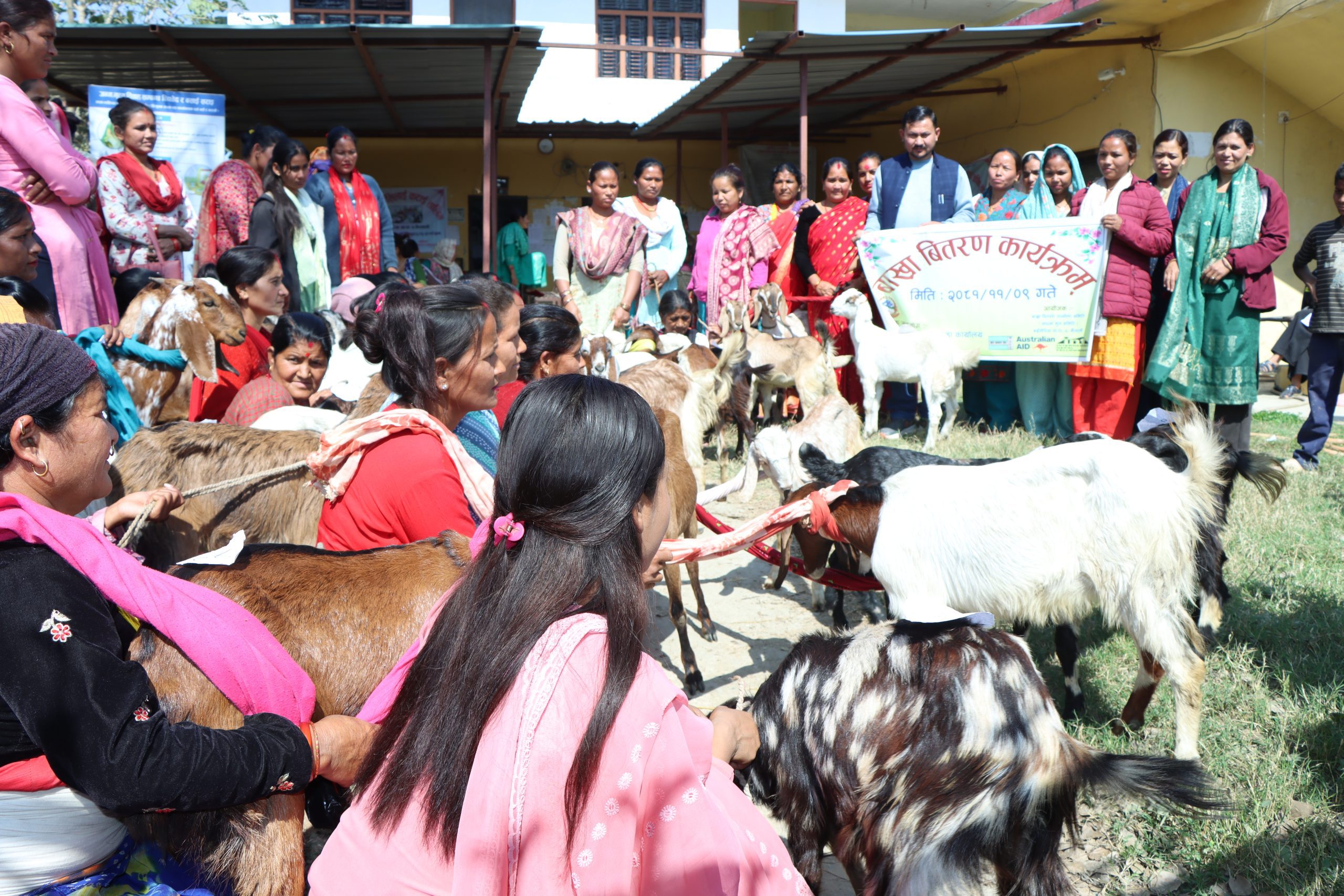 वडाभित्रका ३३ जना एकल विपन्न वर्गका महिलालाई एक–एकवटा बाख्रा निःशुल्क वितरण गरिएको वडाध्यक्ष शाहीले जानकारी दिए। उनका अनुसार वडा कार्यालयले उन्नत जातको बाख्रा निःशुल्क वितरण गरेपछि लाभग्राही महिला हर्षित भएका छन्।