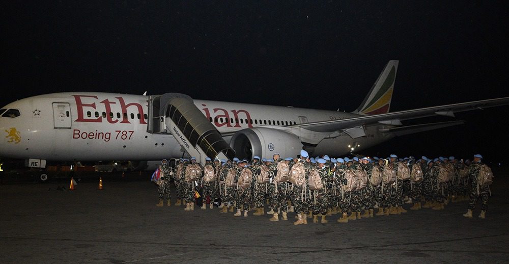 काठमाडौँ । सेन्ट्रल अफ्रिका रिपब्लिकमा तैनाथ नेपाली शान्ति सैनिकहरुको अदलीबदली गरिएको छ ।युनाइटेड नेसन्स मल्टिडायमेन्सनल इन्टिग्रेटेड स्टेबिलाईजेसन मिसन इन द सेन्ट्रल अफ्रिका रिपब्लिकमा तैनाथ हाई रिडीनेस प्रोटेक्सन बटालियनअन्तर्गत दि फेमश महिन्द्रदल गण (शान्ति सेना) छैठौँ डफ्फालाई बदली गर्नको लागि रिपुमर्दन गण (शान्ति सेना) सातौँ डफ्फाका ११८ जना नेपाली शान्ति सैनिकहरुको पहिलो टोली, सेनानी कपिल कुमार सिंहको नेतृत्वमा संयुक्त राष्ट्रसंघको चार्टड बिमानद्वारा मिसन इलाकातर्फ प्रस्थान गरेका हुन् ।यसअघि सोही मिसनमा आफ्नो कार्यकाल सम्पन्न गरी छैठौँ डफ्फामा कार्यरत ११६ जना शान्ति सैनिकहरू सेनानी दिपेश राना मगरको नेतृत्वमा फाल्गुण ११ गते नै स्वदेश फिर्ता भएका थिए ।हाल उक्त मिसनमा नेपाली सेनाका १२४४ जना शान्ति सैनिकहरु कार्यरत रहेको नेपाली सेनाले जनाएको छ ।