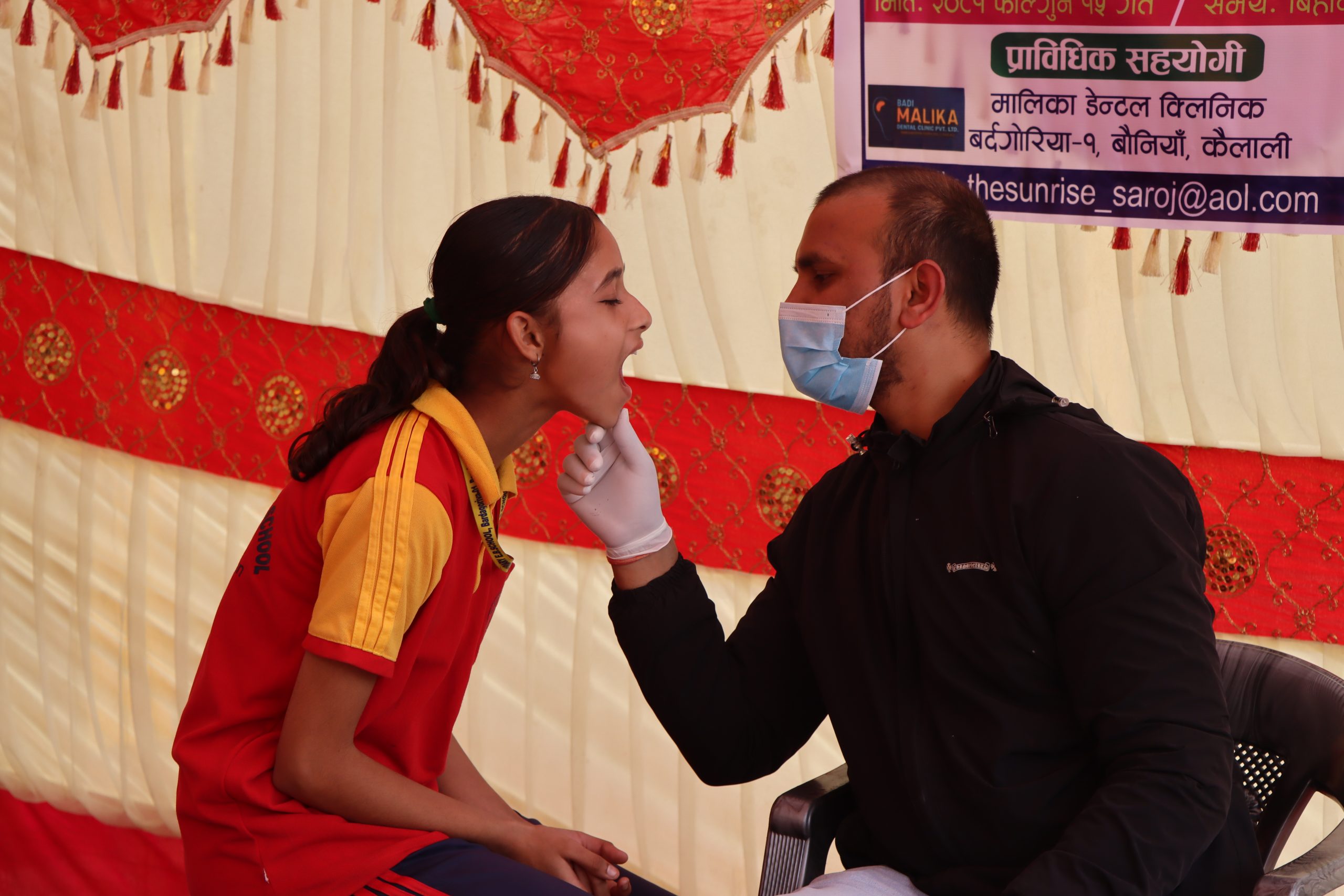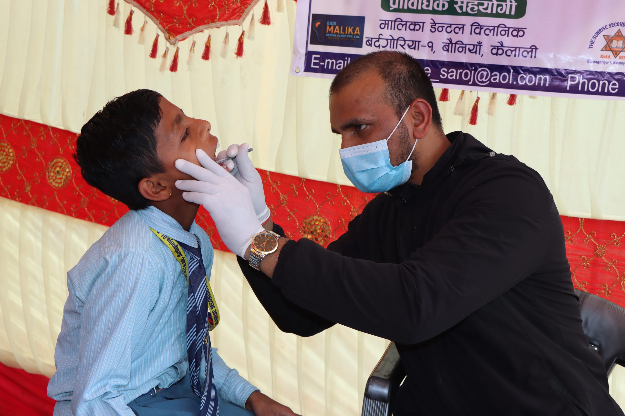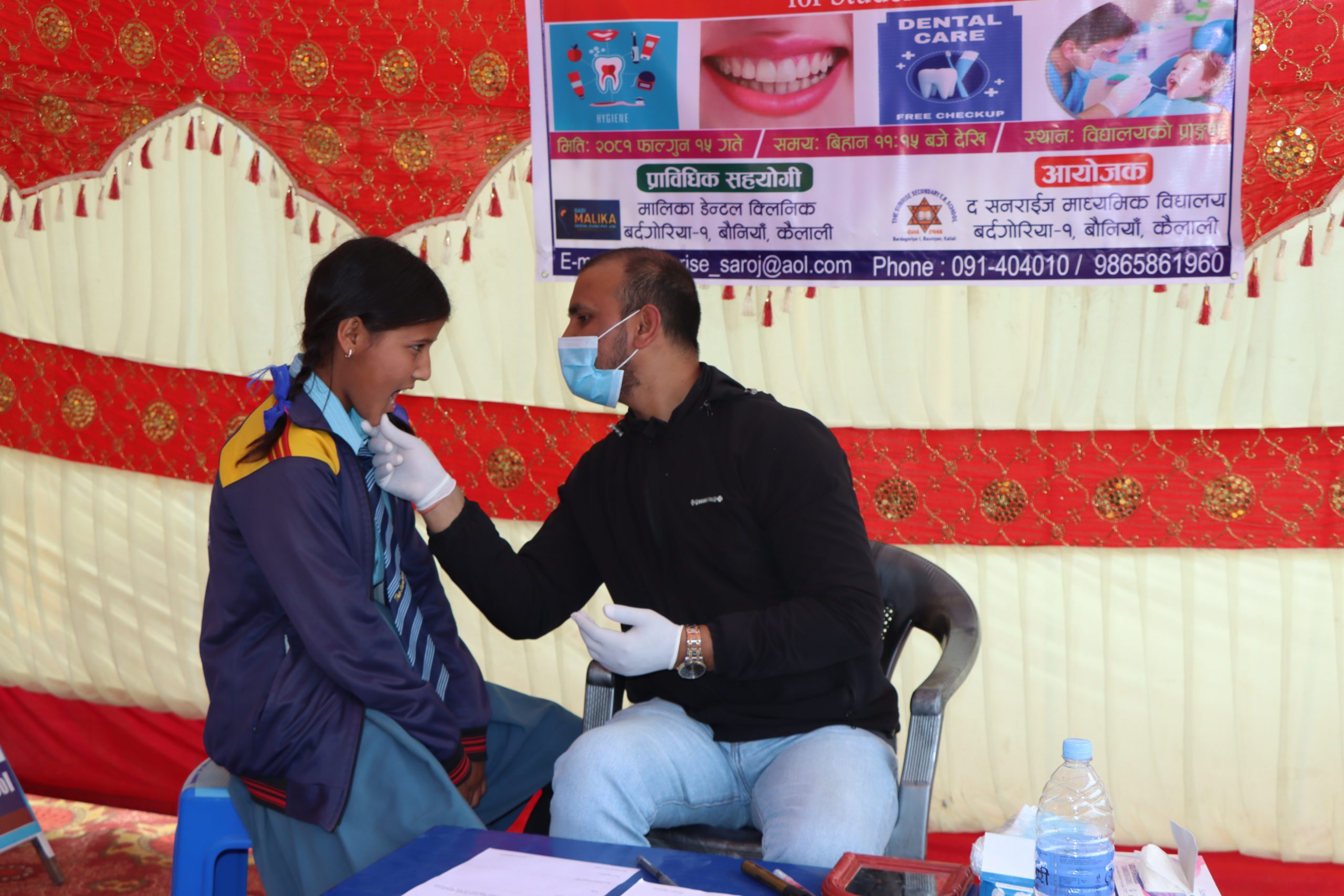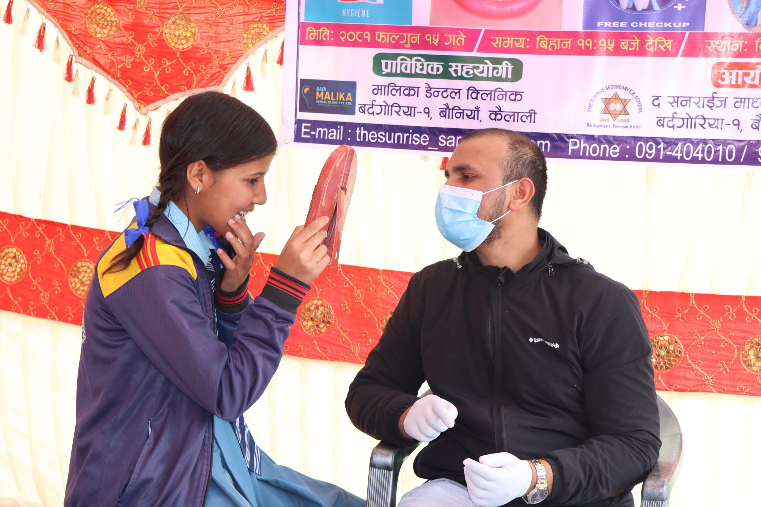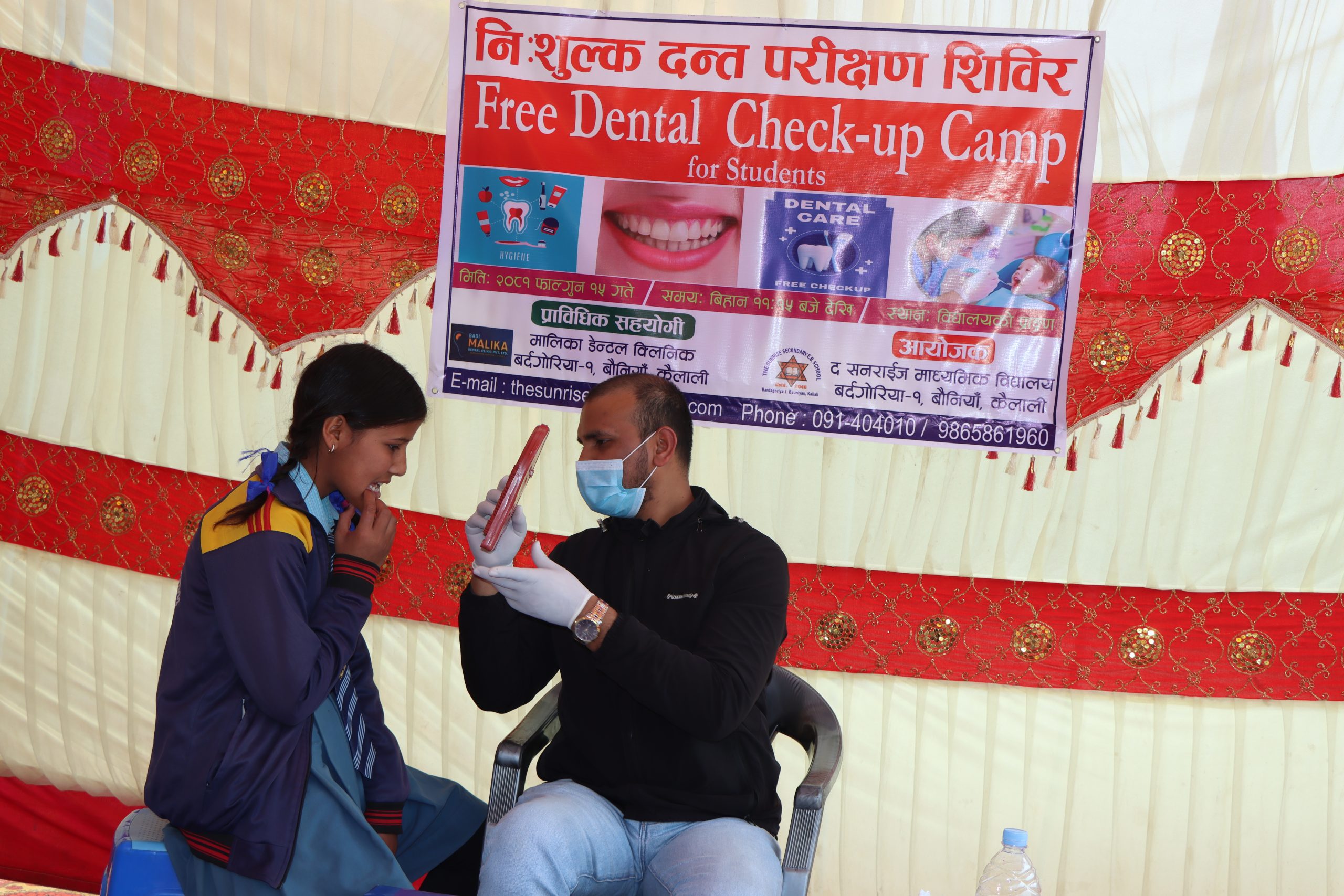 कैलाली- कैलाली जिल्लाको बर्दगोरिया गाउँपालिका वडा नं १ मा रहेको मालिका डेन्टल क्लिनिकले बौनियास्थित द सनराईज माध्यामिक विद्यालयमा नि:शुल्क दन्त परीक्षण शिविर गरेको छ। मालिका डेन्टल क्लिनिकले फागुन १५ गते बिहीबार शिविर सञ्चालन गरेको हो।