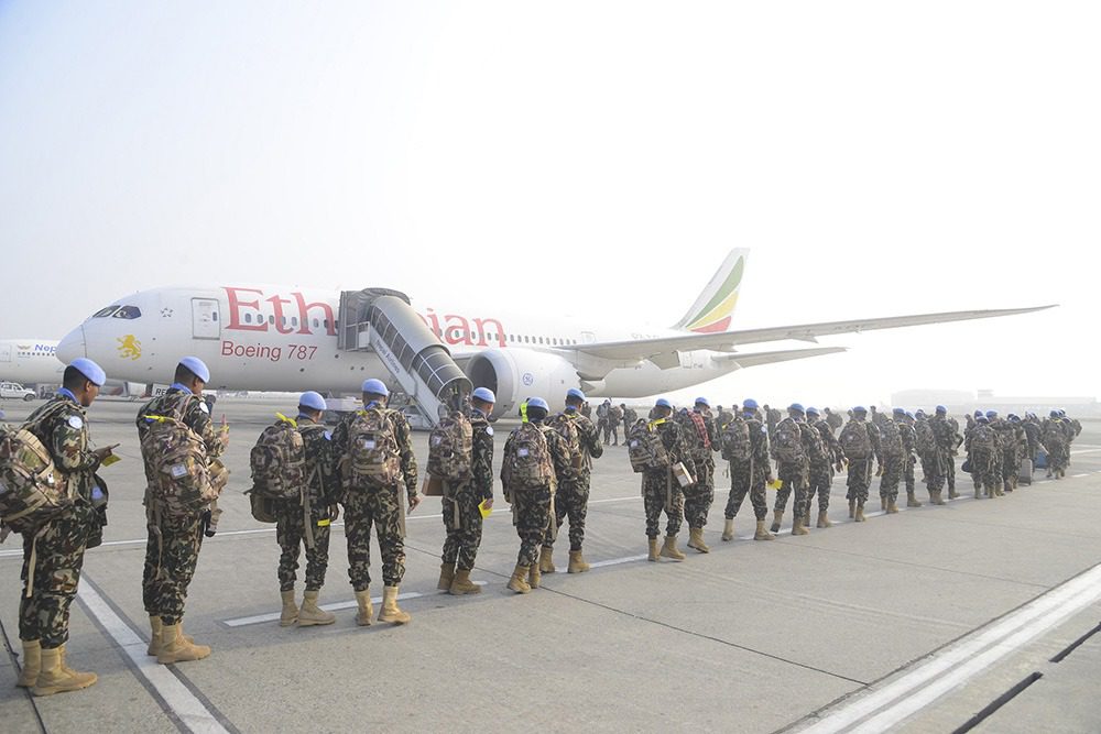 काठमाडौँ । कंगोमा तैनाथ नेपाली शान्ति सैनिकहरुको अदलीबदली गरिएको छ । संयुक्त राष्ट्रसंघको आव्हानमा शान्ति स्थापना कार्यको लागि डेमोक्रेटिक रिपब्लिक अफ कंगोमा रहेको युनाइटेड नेसन्स अर्गनाइजेसन स्टाबीलाइजेसन मिसन इन द डेमोक्रेटिक अफ कंगो मिसनमा तैनाथ हुन जाने श्री चण्डीदल गण ३१औं डफ्फाको १६२ जना नेपाली शान्ति सैनिकहरुको छैठौ तथा अन्तिम टोली सेनानी रत्न बहादुर श्रेष्ठको नेतृत्वमा संयुक्त राष्ट्रसंघको चार्टड बिमानद्वारा मिति २०८१ फाल्गुण १६ गते मिसन इलाका प्रस्थान गरेको छ ।मिसन कंगोमा नेपाली सेनाको एउटा गण, दुईवटा गुल्मका साथै स्टाफ तथा सैनिक पर्यवेक्षक सहित १,१४९ जना शान्ति सैनिकहरु कार्यरत छन् ।