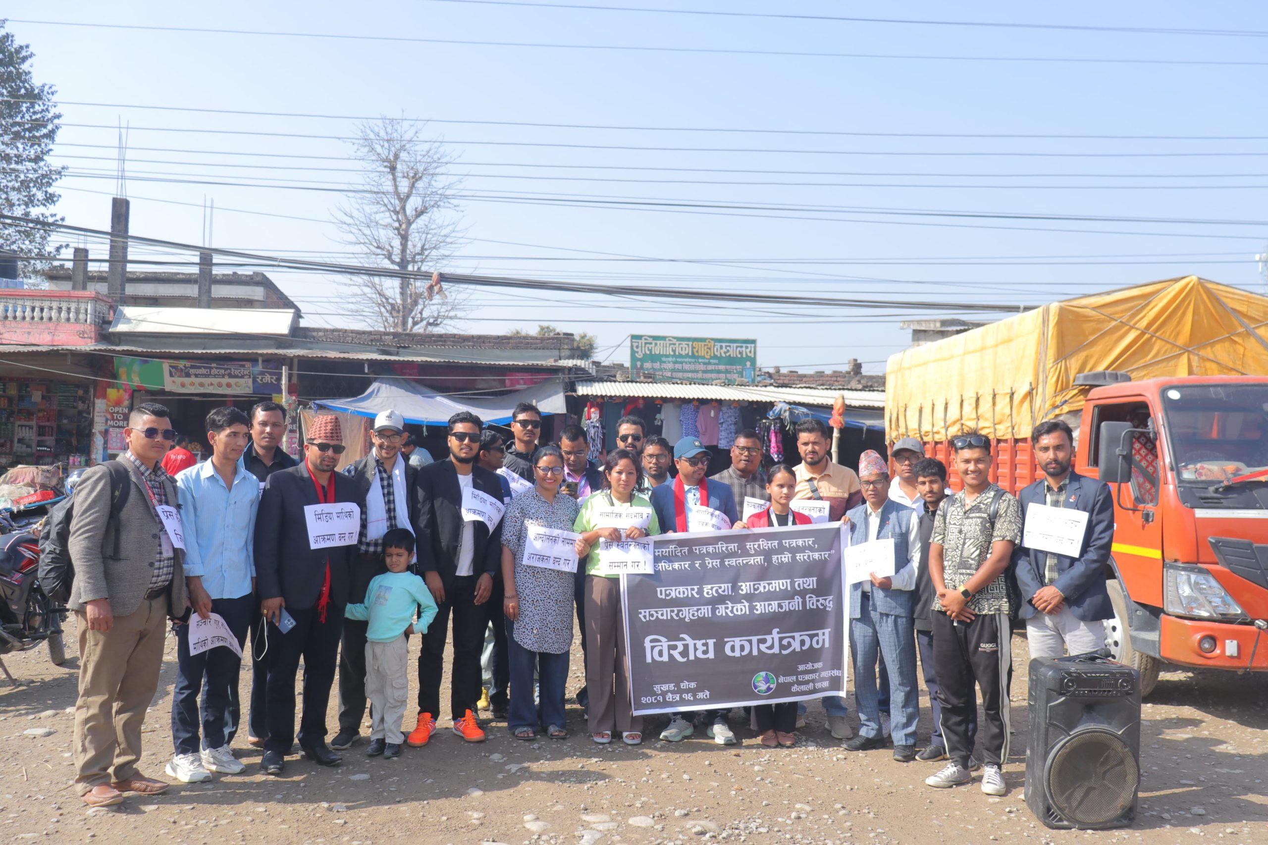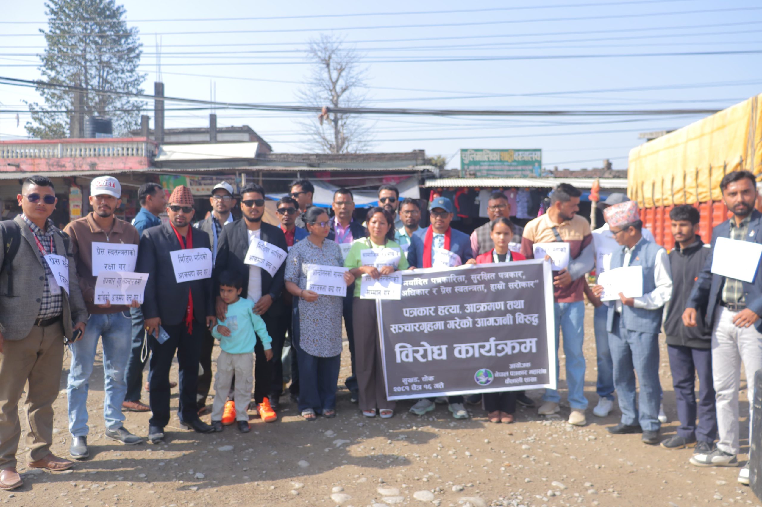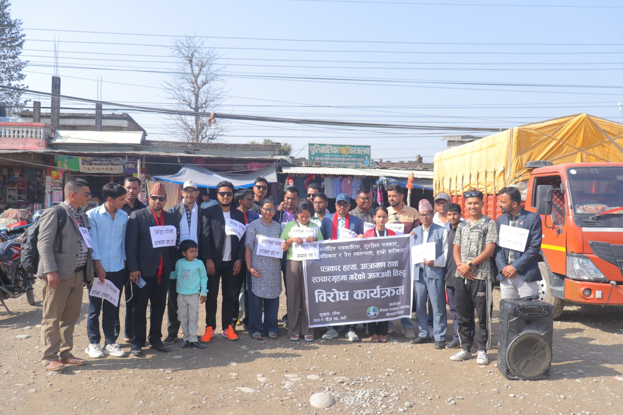 पत्रकार महासंघले यसअघि तय गरिएका कार्यक्रम रद्द गरेर विरोध सभा आयोजना गरिएको छ। पत्रकारको हत्या तथा सञ्चारमाध्यममा गरिएको आगजनी तथा तोडफोडको विरुद्ध विरोध सभाको आयोजना गरिएको हो । नेपाल पत्रकार महासंघ कैलालीको आयोजनामा पत्रकारको हत्या तथा सञ्चारगृहमा गरिएको आगजनी बिरुद्धमा आज धनगढीको चौराहमा बिरोध प्रदर्शन गरिएको नेपाल पत्रकार महासंघ कैलालीका सह सचिब शंकर बोहराले जानकारी दिए ।