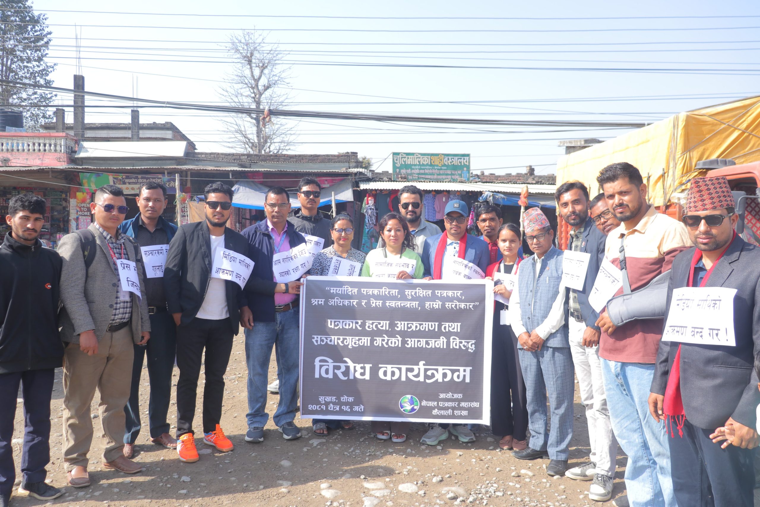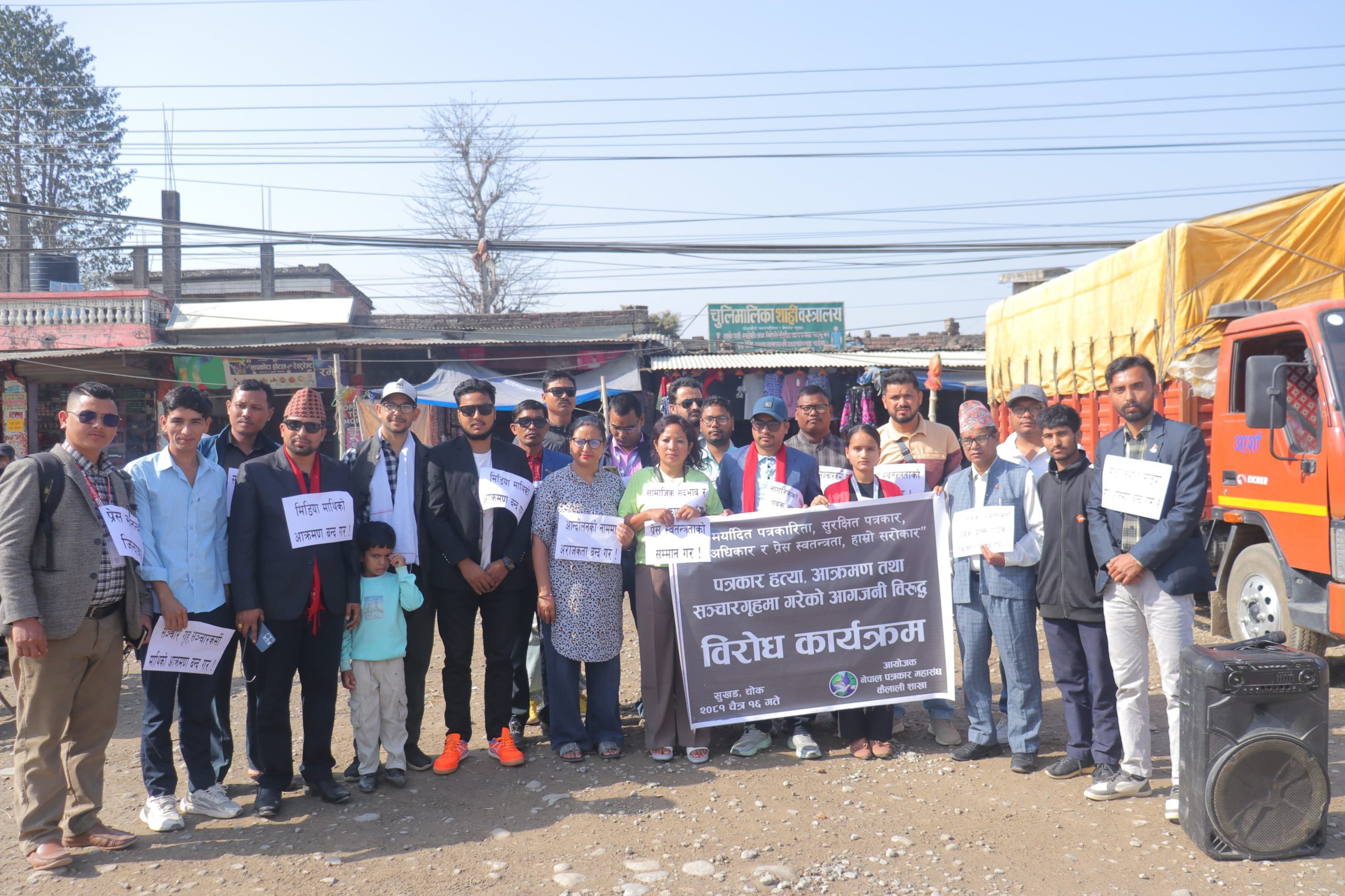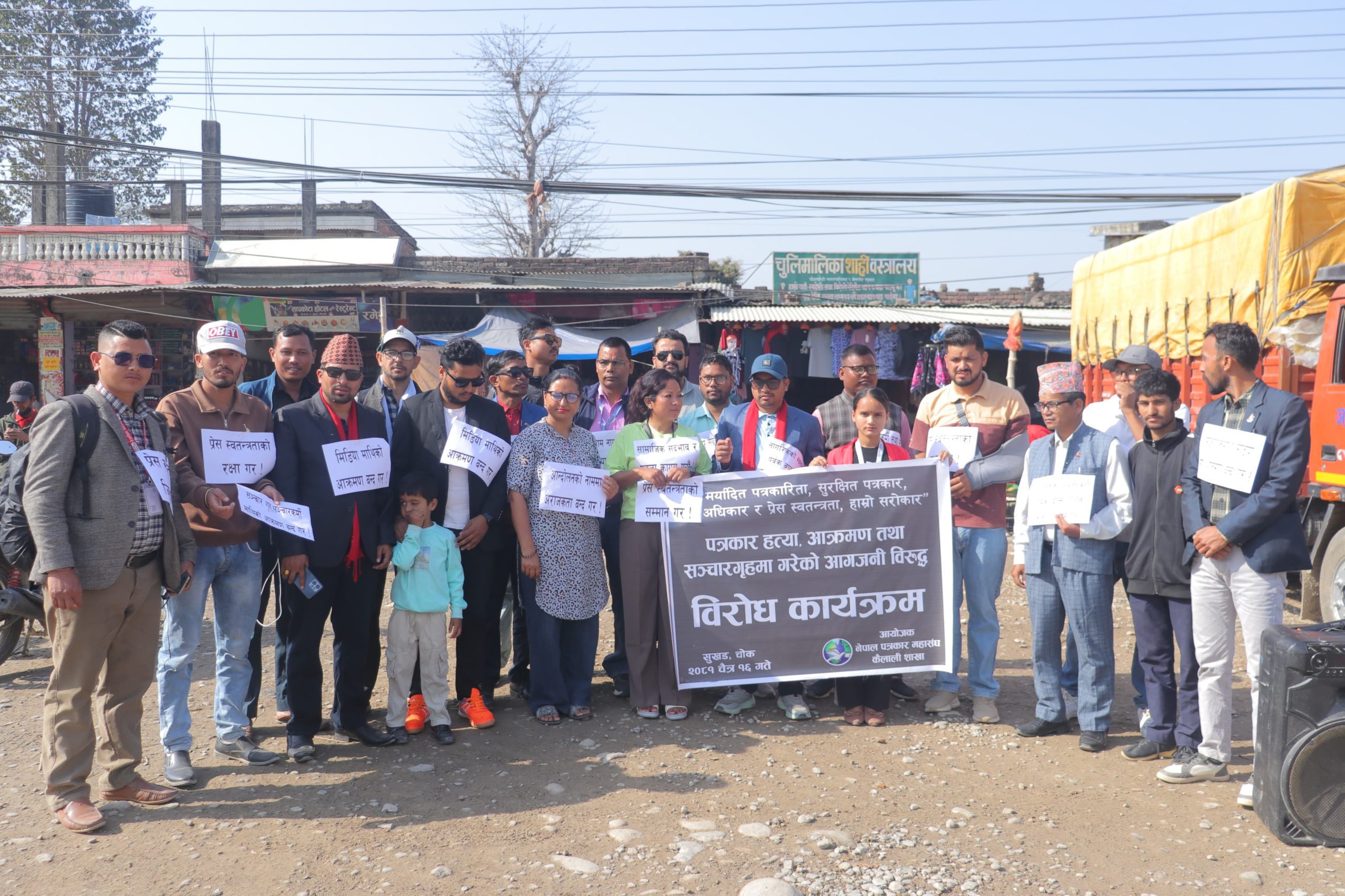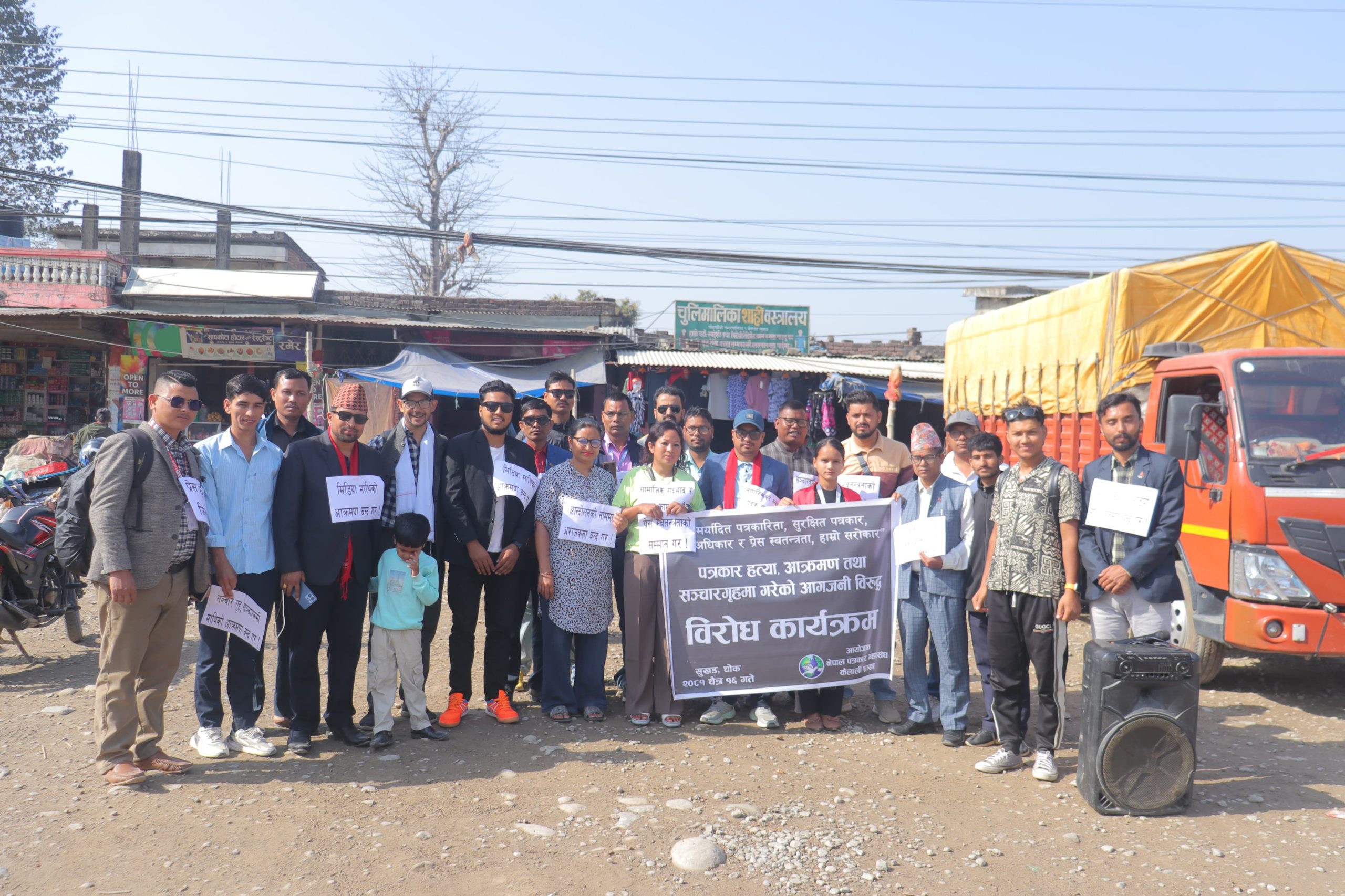 पत्रकार महासंघले यसअघि तय गरिएका कार्यक्रम रद्द गरेर विरोध सभा आयोजना गरिएको छ। पत्रकारको हत्या तथा सञ्चारमाध्यममा गरिएको आगजनी तथा तोडफोडको विरुद्ध विरोध सभाको आयोजना गरिएको हो । नेपाल पत्रकार महासंघ कैलालीको आयोजनामा पत्रकारको हत्या तथा सञ्चारगृहमा गरिएको आगजनी बिरुद्धमा आज धनगढीको चौराहमा बिरोध प्रदर्शन गरिएको नेपाल पत्रकार महासंघ कैलालीका सह सचिब शंकर बोहराले जानकारी दिए ।