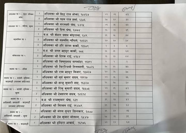 काठमाडौं । नेपाल बार एशोसिएसको निर्वाचनमा बिजयकुमार मिश्रले अग्रता जारी रहेको छन् । जारी मतगणनाको प्रारम्भिक रिपोर्ट अनुसार काठमाडौं, बिराटनगर, धनकुटा, सुनसरी, मोरङलगायतका मतदान केन्द्रको मतगणना हुदाँ मिश्रले अग्रता लिईरहेका हुन् । काठमाडौंमा मिश्रको ६४ मत प्राप्त हुदाँ श्रेष्ठले ५१ मत पाएको आधिकारिक घोषणा गरिएको छ।