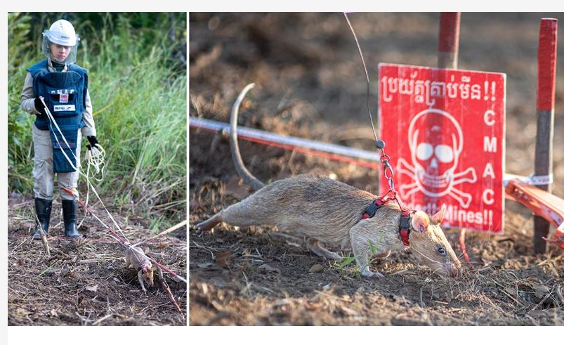 यी ‘हेरोराट्स’ लाई ल्यान्डमाइन र अन्य विस्फोटक पदार्थ जस्ता हतियारहरूमा रसायन पत्ता लगाउन तालिम दिइन्छ। मेटल डिटेक्टरको प्रयोग गरेर यस्तो क्षेत्र खोज्न मानिसलाई सामान्यतया ४ घण्टा लाग्छ तर यी मुसाहरूले कम समयमा काम गर्छन्।