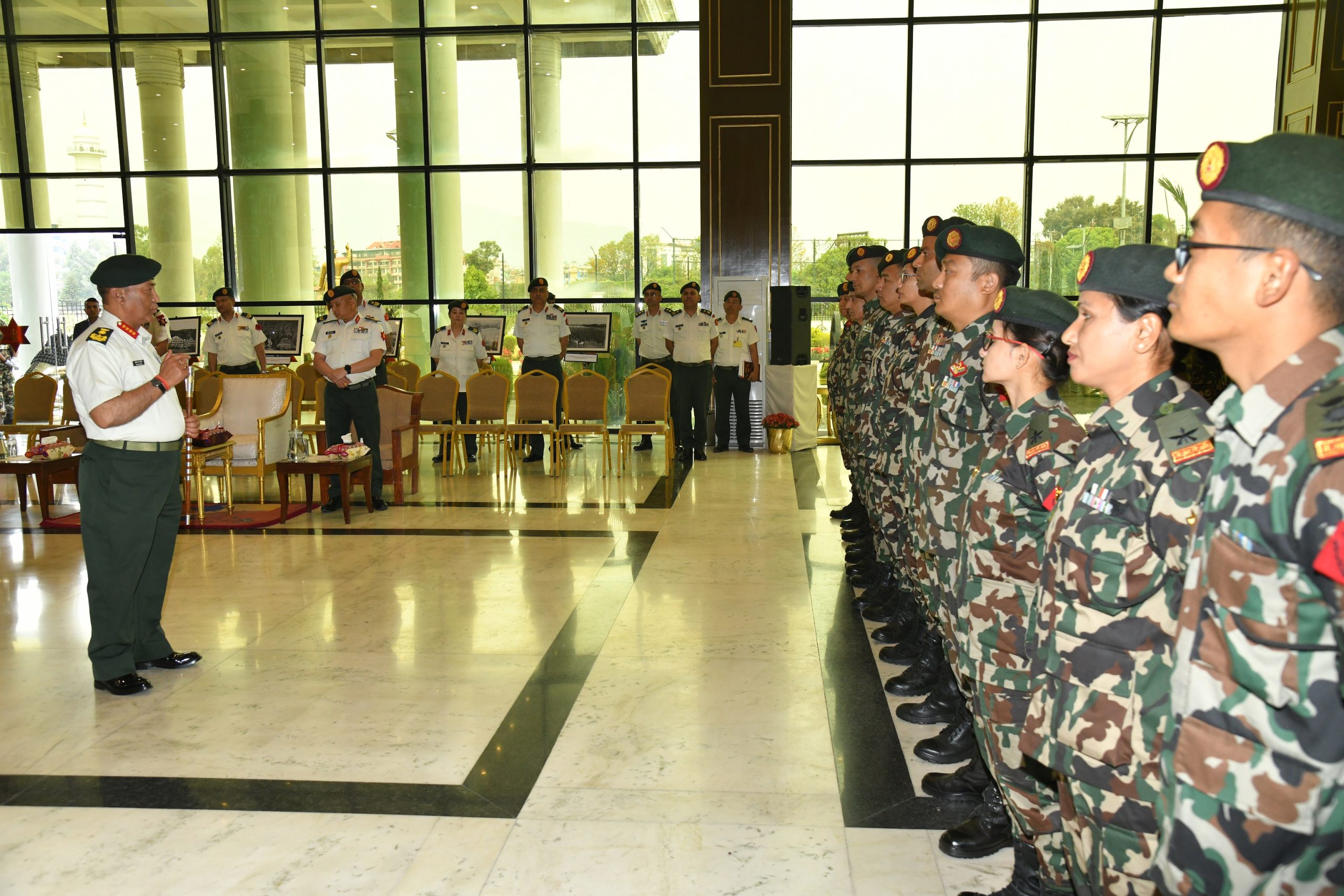 दुइ साता अघि म्यानम्यार गएका नेपाली सेनाका २३ जनालाइ आज जङ्गी अड्डामा आयोजित एक कार्यक्रमका बिच प्रधान सेनापति प्रशंसा निसानद्वारा सुशोभित गरिएको नेपाली सेनाले जनाएकाे छ ।